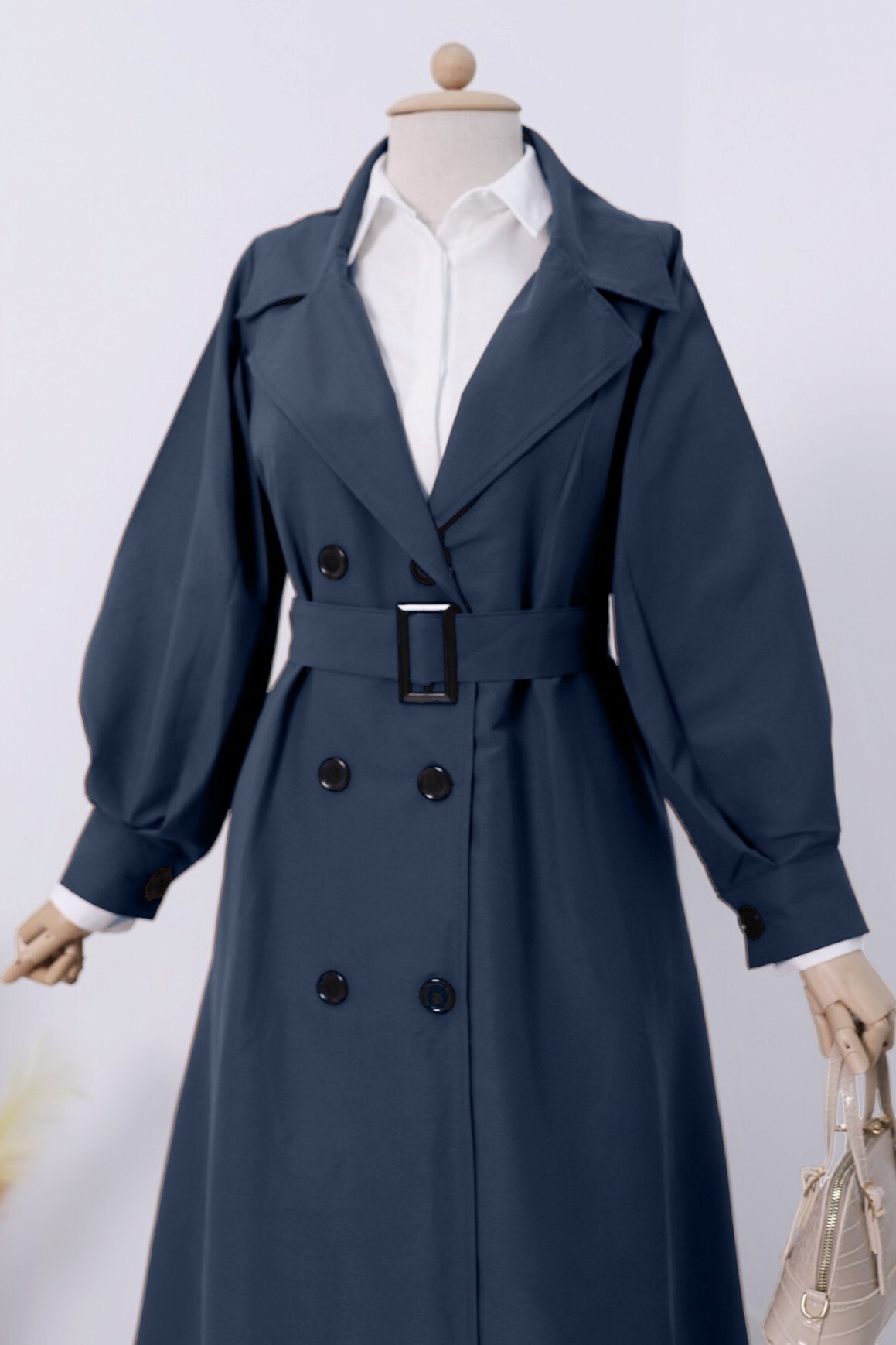 Not: Ürün içeriği trençkottan oluşmaktadır. (Pantolon, gömlek, ayakkabı, çanta ve takılar dekor amaçlı kullanılmaktadır.)