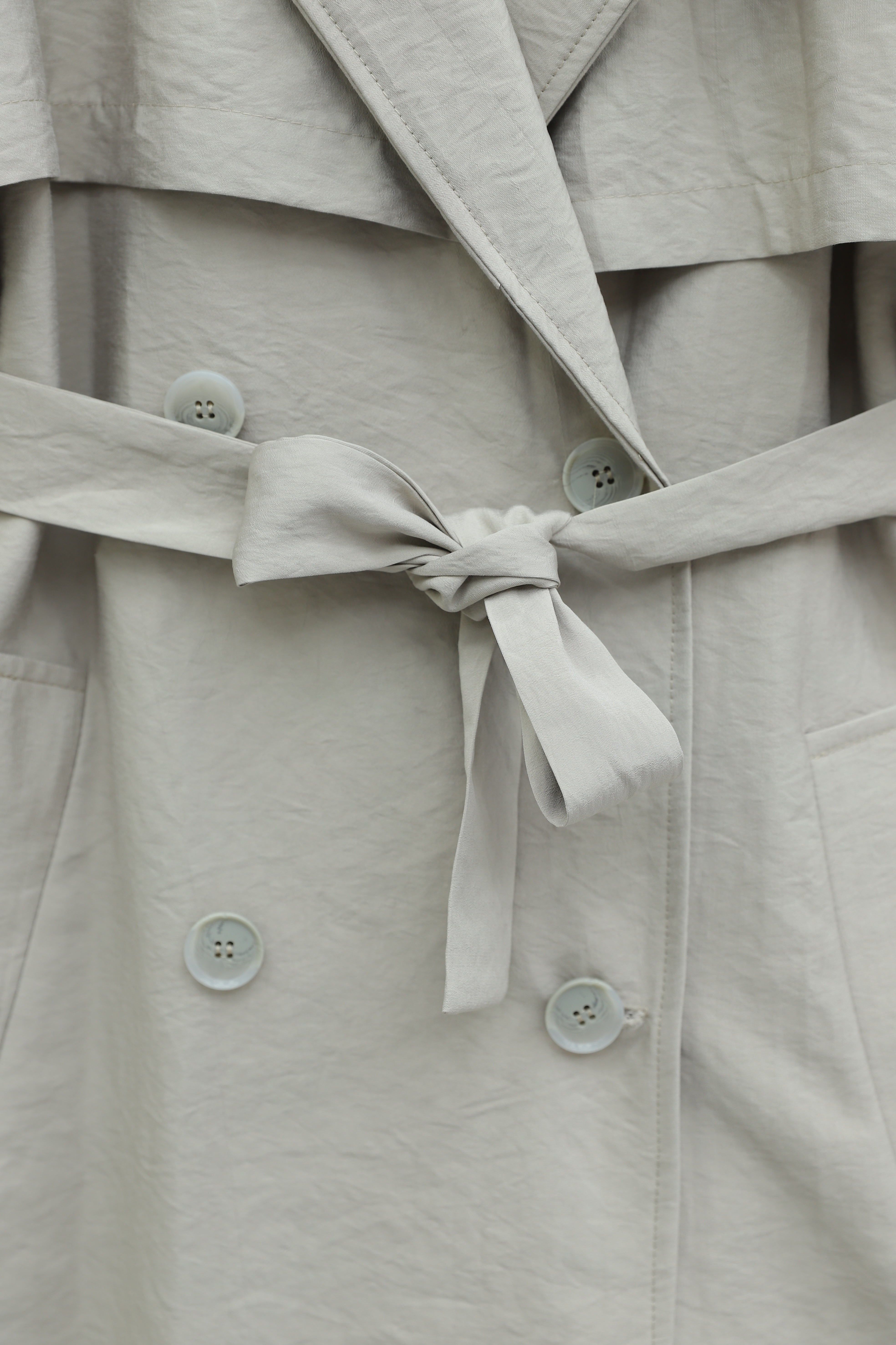 Beli Kemerli Cepli Kolu Apoletli Bolerolu Pes Kumaş Trençkot -Taş
