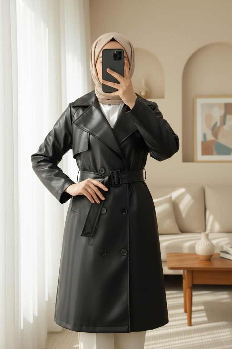 Not: Ürün içeriği pardesüden oluşmaktadır. (Ayakkabı, bluz, pantolon, çanta ve takılar dekor amaçlı kullanılmaktadır.)