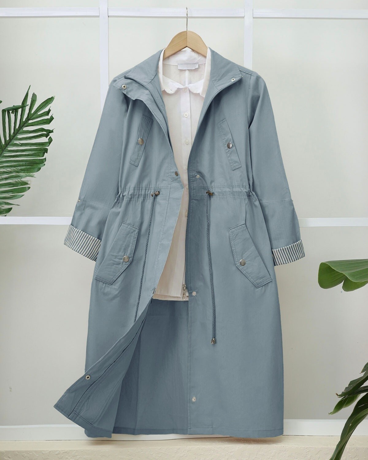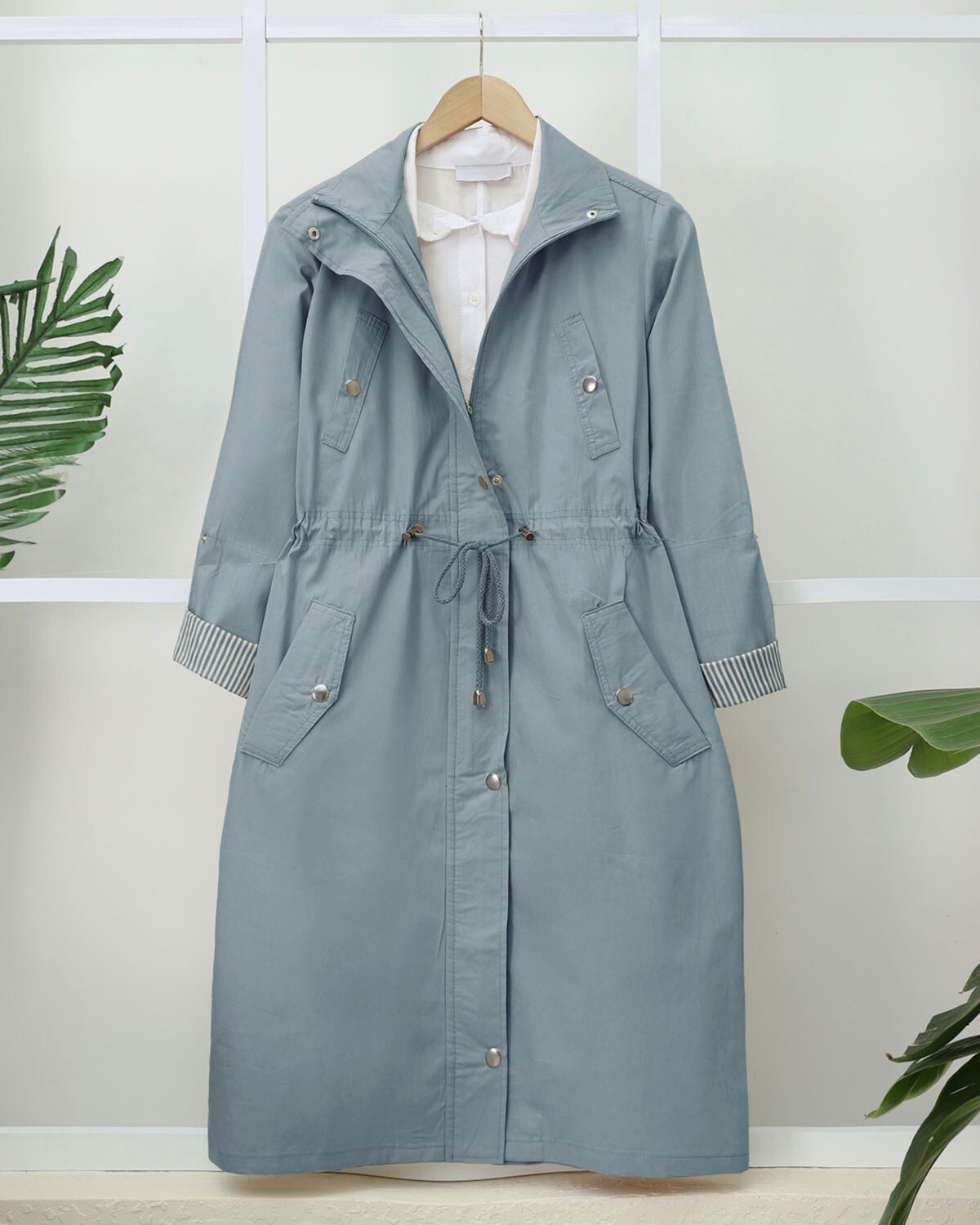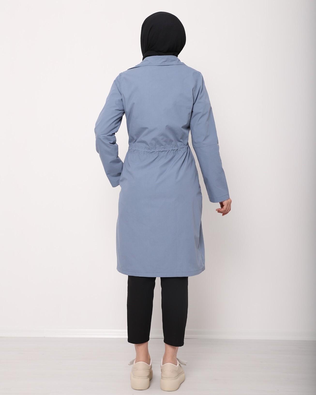 Önden fermuarlı, çıtçıtlı, kolları katlamalı, 2 cepli, beli büzgülü trençkot modelimiz yeni sezonun en trend modelleri arasında yerini almıştır.