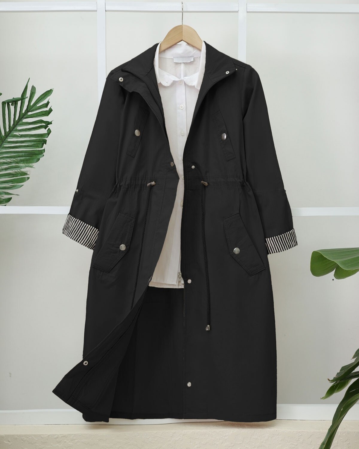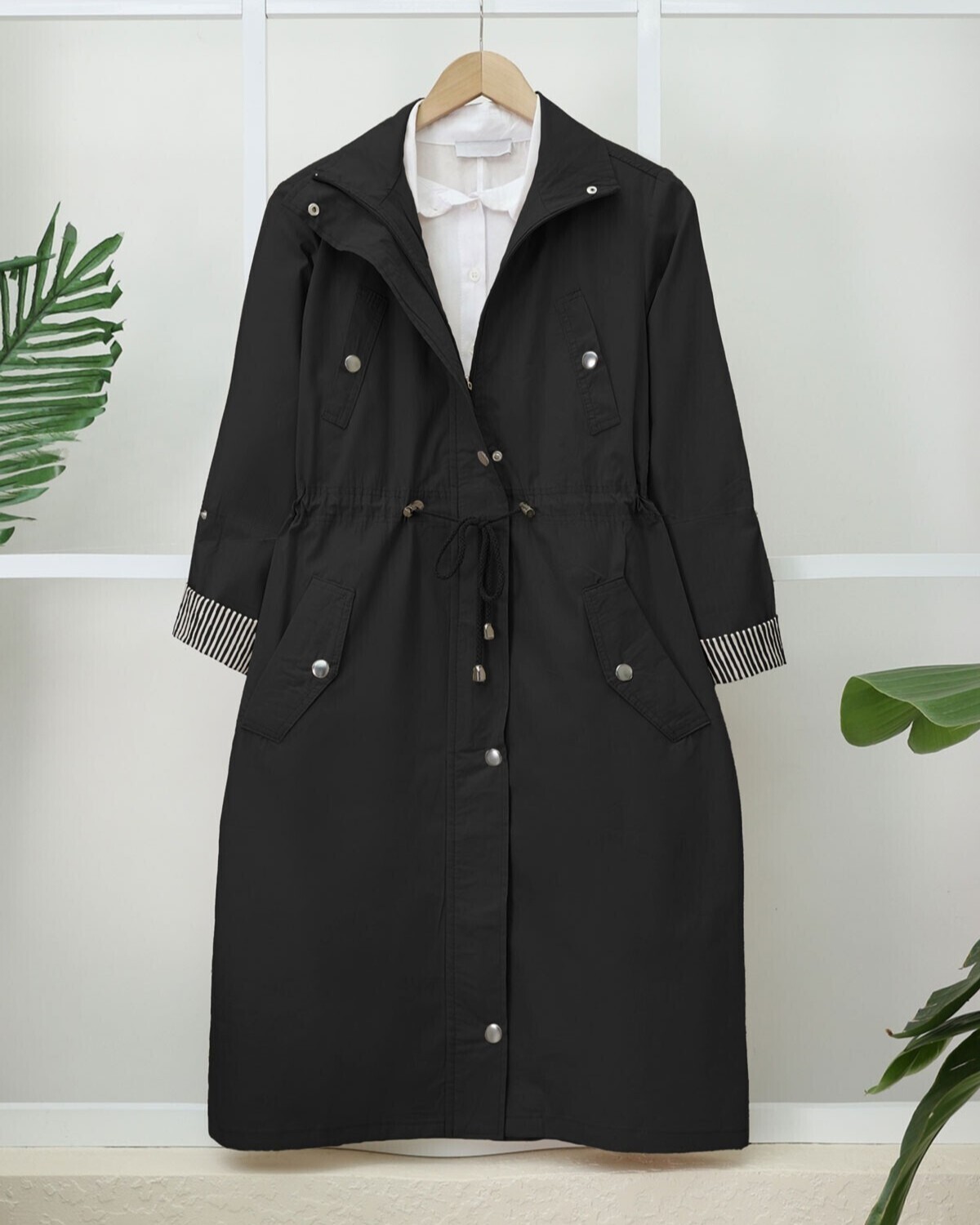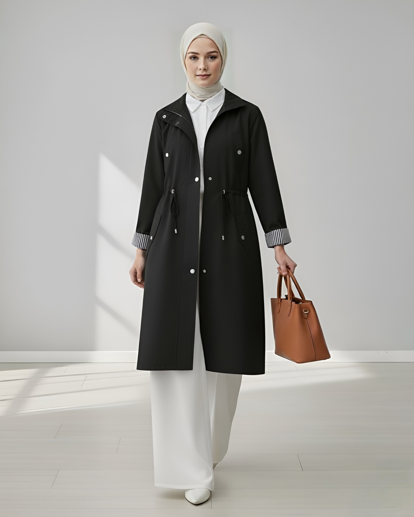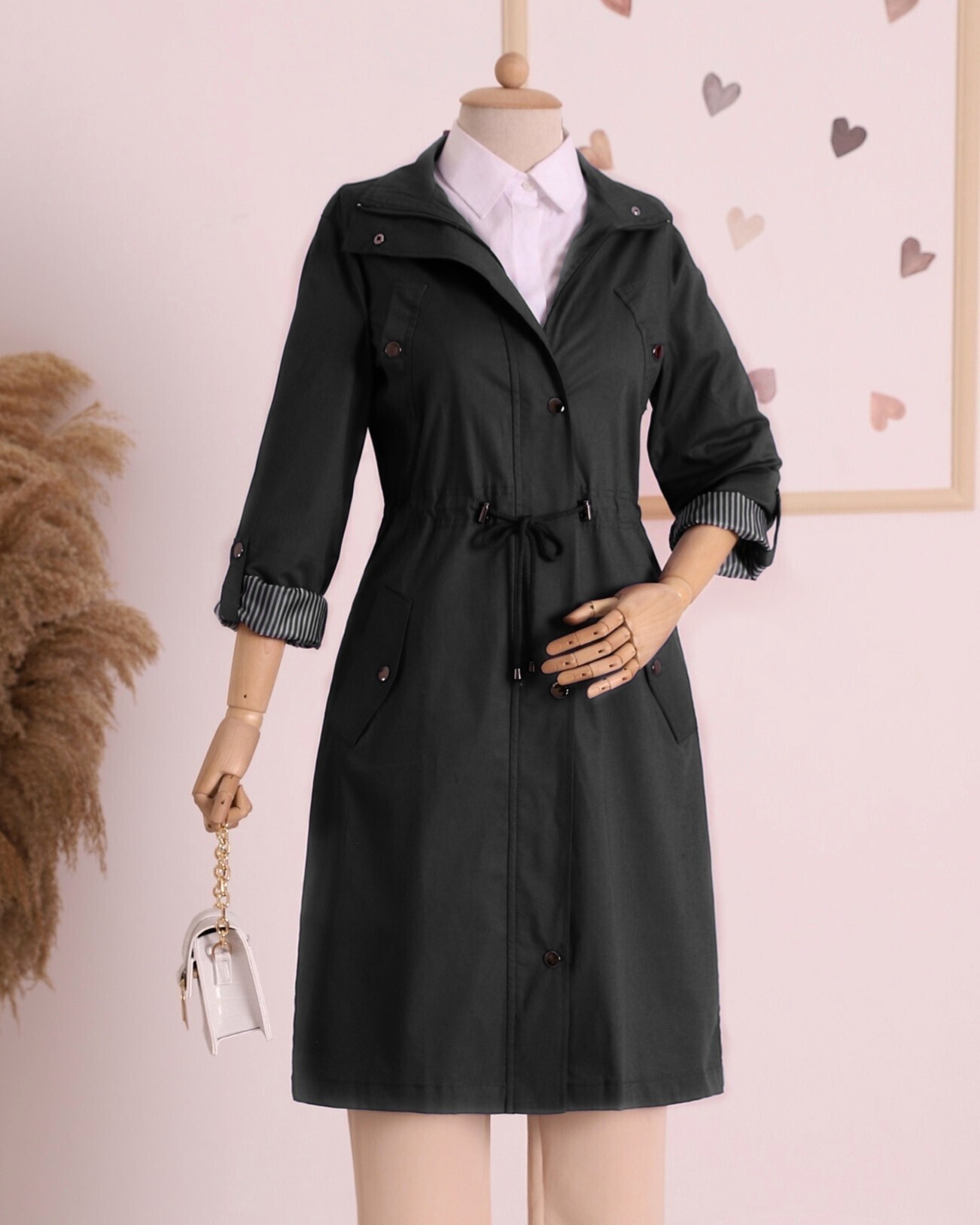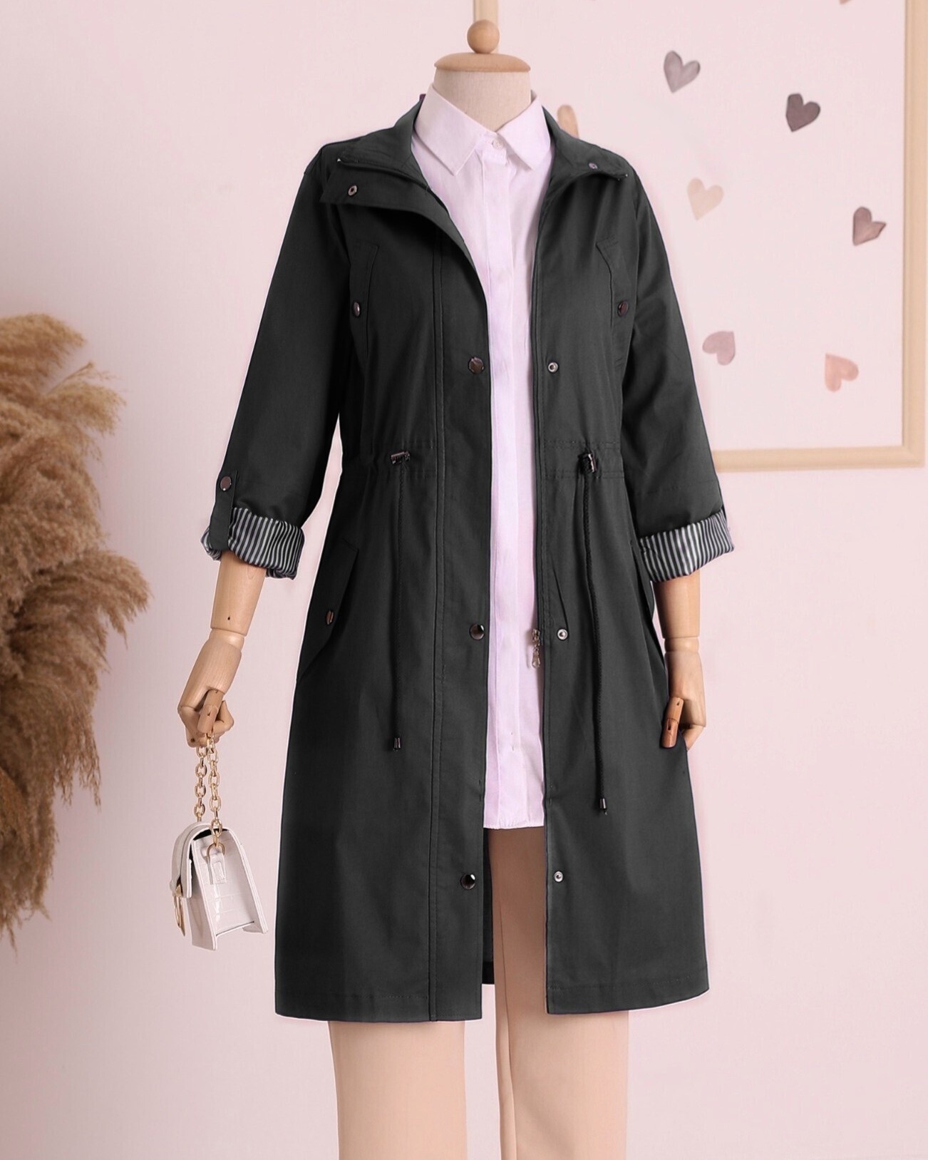 Önden fermuarlı, çıtçıtlı, kolları katlamalı, 2 cepli, beli büzgülü trençkot modelimiz yeni sezonun en trend modelleri arasında yerini almıştır.
