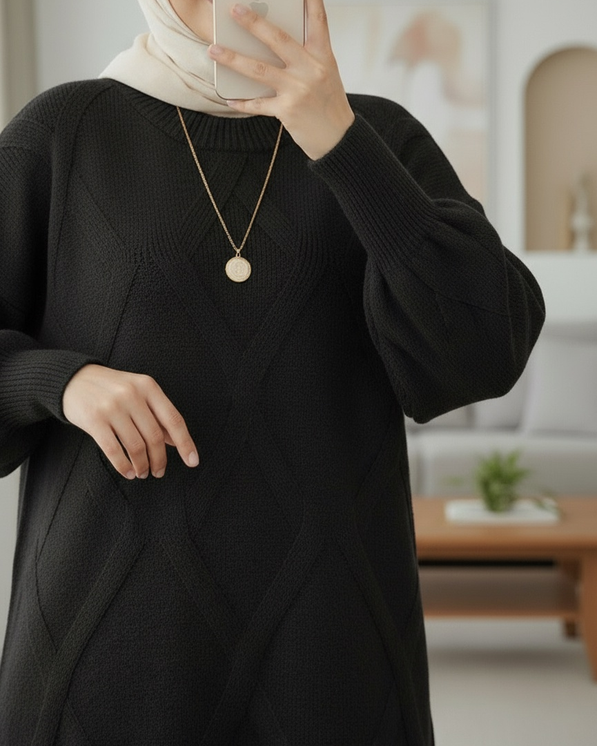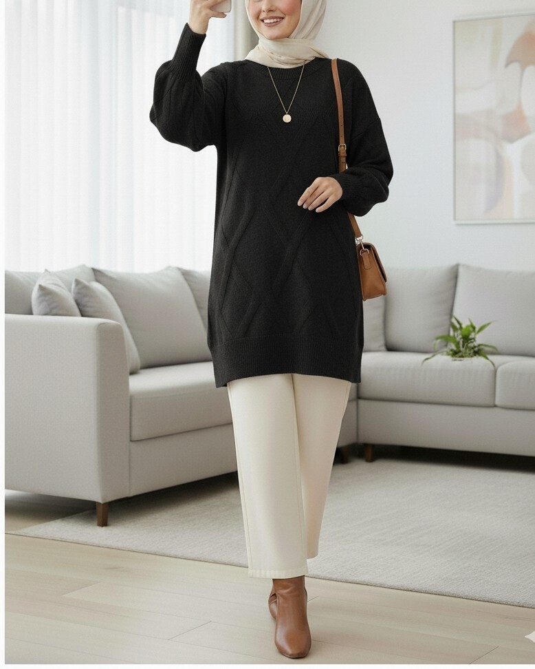 Baklava Desenli Yumoş Triko Tunik, yumuşacık dokusu ve modern baklava desenli tasarımıyla kış sezonunun en trend parçalarından biridir. Sıcacık tutan yumoş triko kumaşı sayesinde konforlu bir kullanım sunarken, baklava desenleri tunik modeline hem zarif hem de dinamik bir görünüm kazandırır. Yuvarlak yaka formu her vücut tipine uyum sağlar ve günlük stilinize doğal bir şıklık katar.