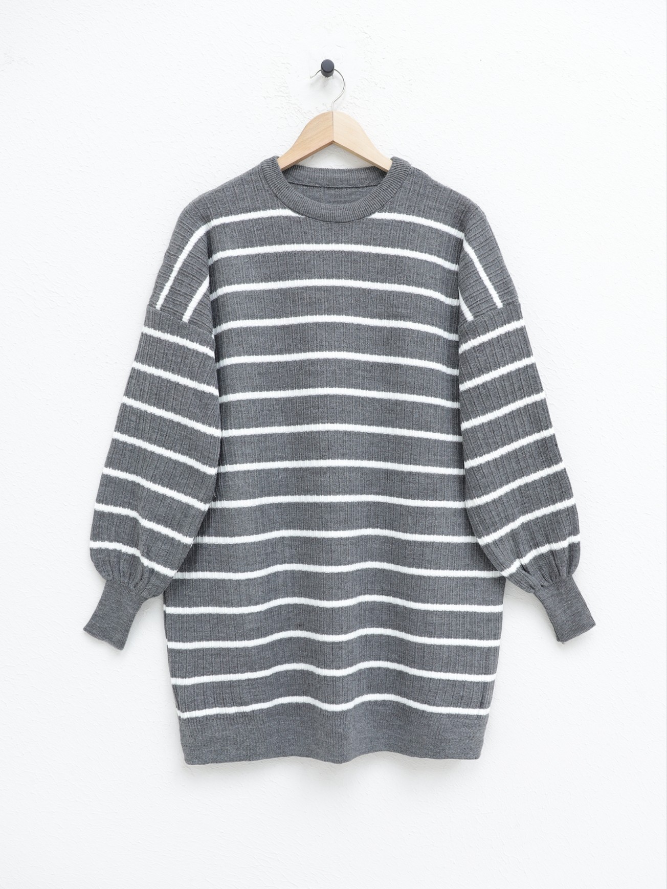 Bisiklet Yaka Fitilli Triko Tunik -Gri