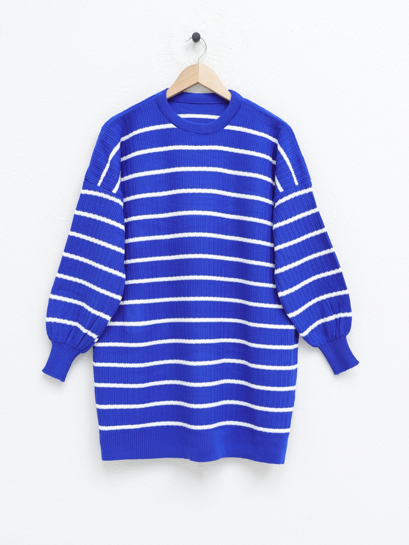 Bisiklet Yaka Fitilli Triko Tunik -Saks