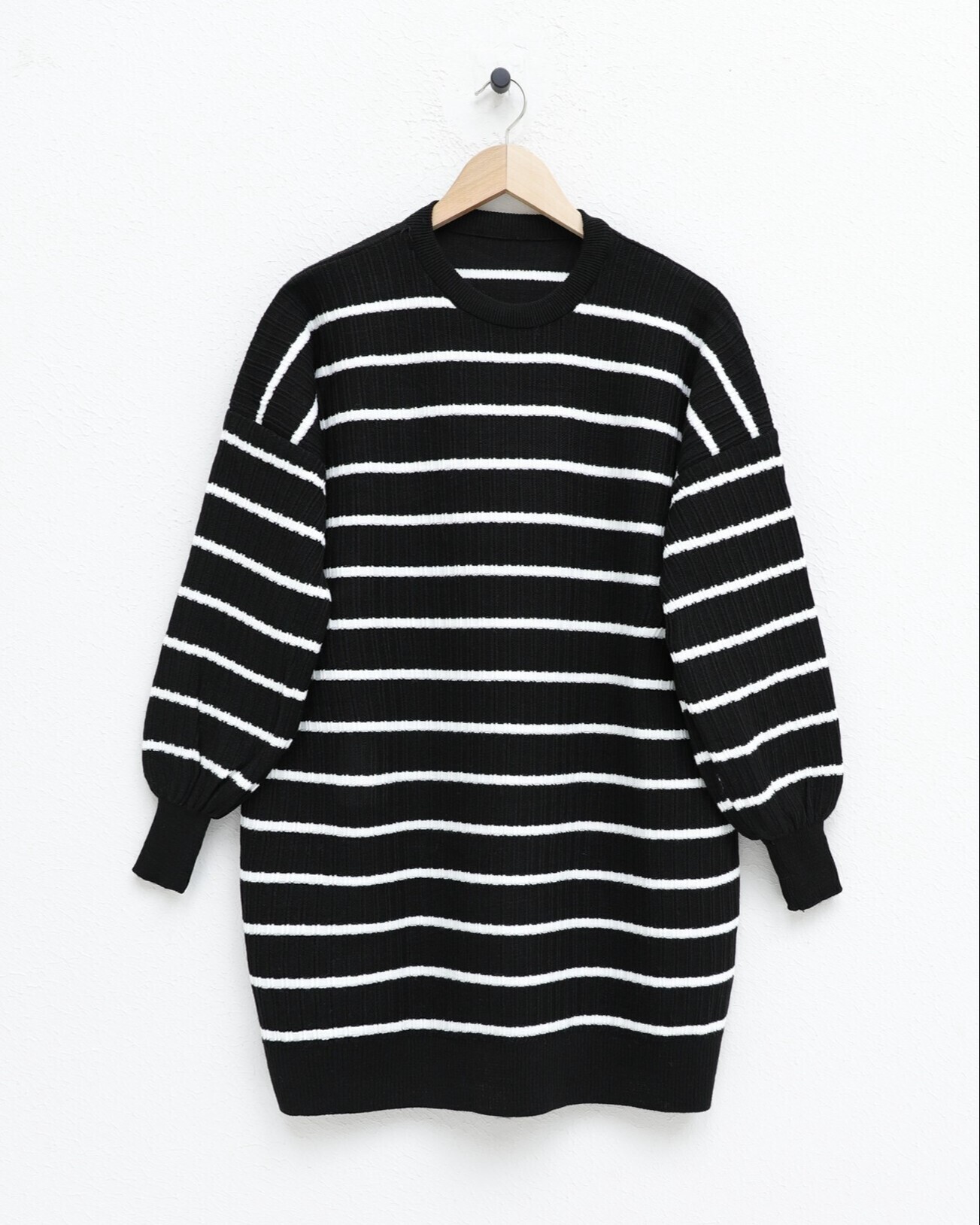 Bisiklet Yaka Fitilli Triko Tunik -Siyah