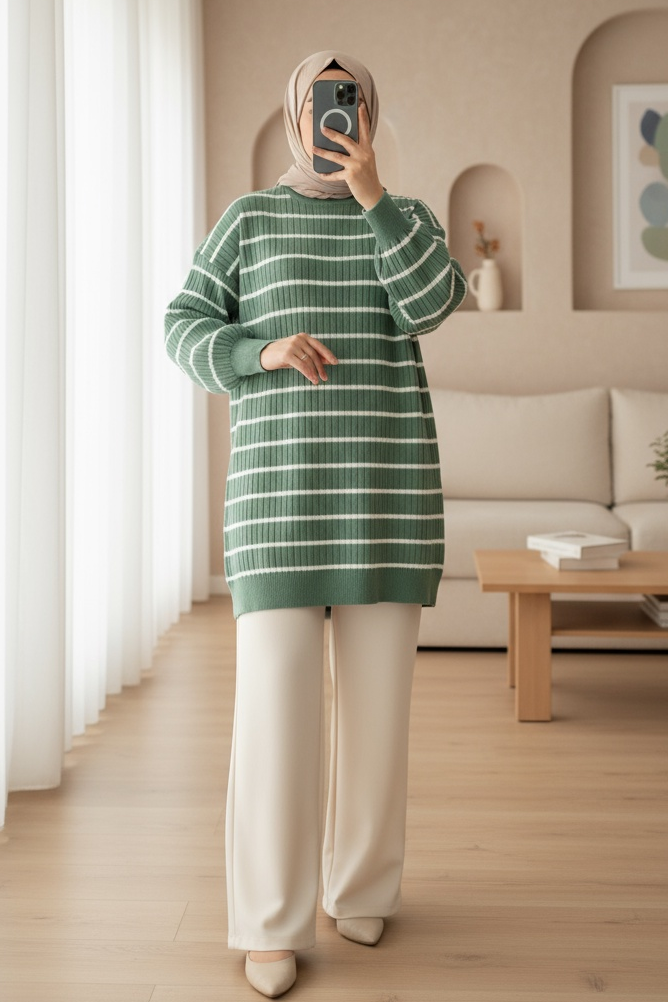 Bisiklet Yaka, Fitilli Triko Tunik; zarif ve modern bir tasarıma sahip rahat bir parçadır. Bisiklet yaka detayı, sade ve şık bir görünüm sunarken, fitilli triko kumaşı elbiseye dokusal bir derinlik ve şıklık katar. Vücuda oturan kesimi ile rahat ve şık bir kullanım sağlar. Hem günlük kombinler hem de şık etkinlikler için mükemmel bir tercihtir.