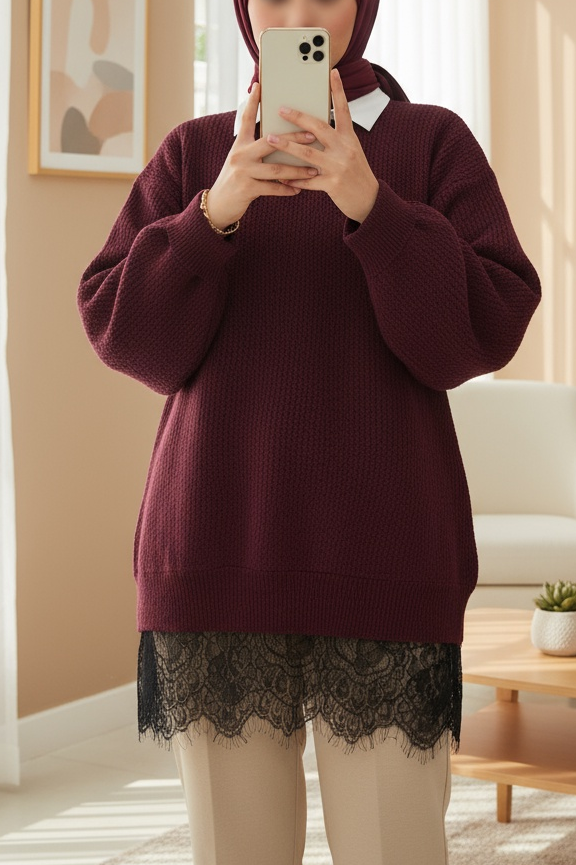 Eteği Dantel Detaylı Triko Kazak, zarif ve feminen bir dokunuşla stilinizi tamamlar. Yumuşak triko kumaşı, rahatlık sağlarken, eteğindeki dantel detayları kazakla modern bir şıklık yaratır. Dantel, zarafeti ve inceliği ön plana çıkarırken, triko yapısı soğuk havalarda sizi sıcak tutar. Hem günlük hem de özel günlerde rahatlıkla tercih edebileceğiniz bu kazak, şıklığı ve konforu bir arada sunar.