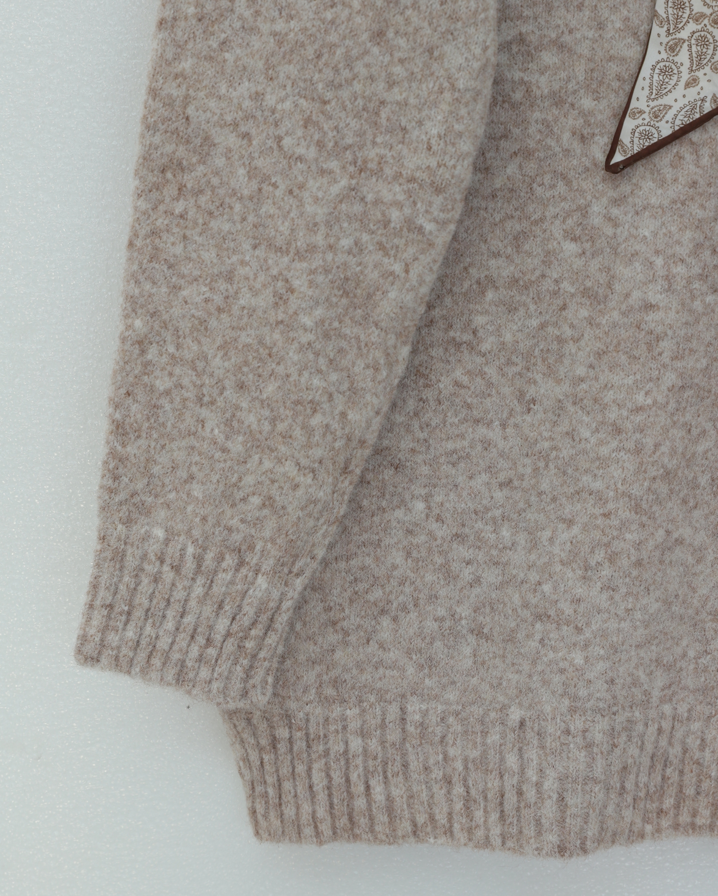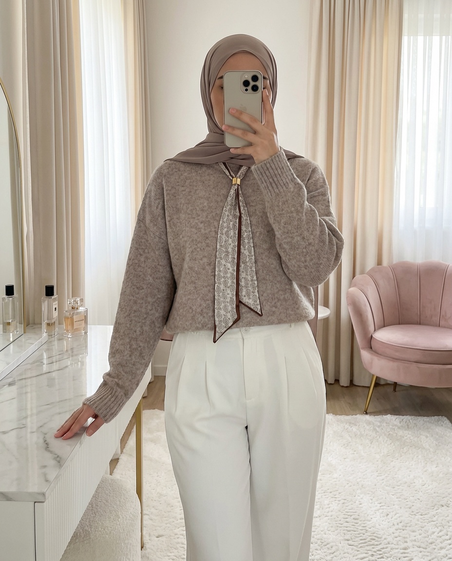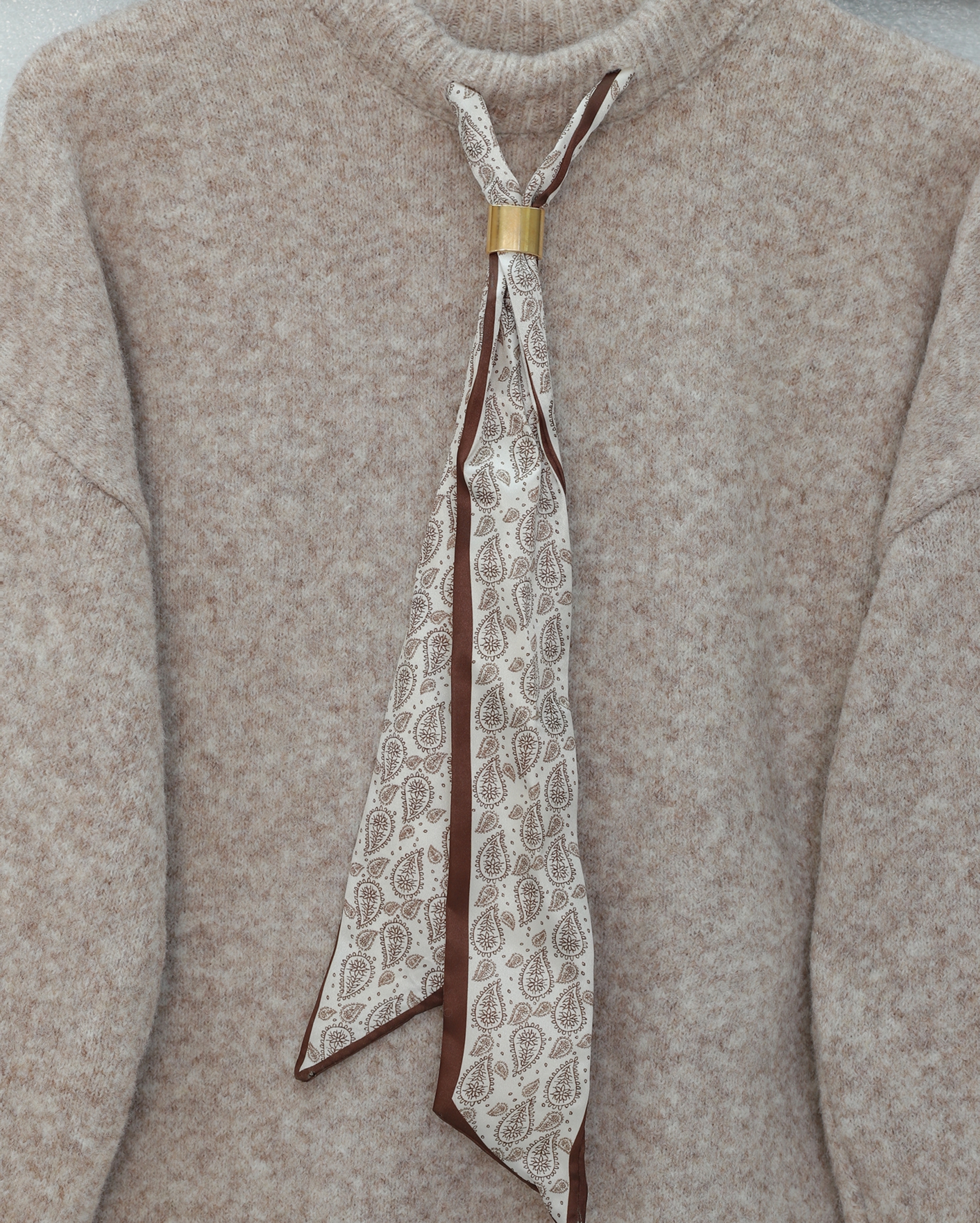 Fularlı Yumoş Triko Kazak -Açık Vizon