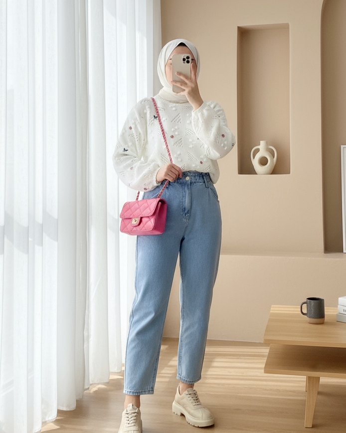 Not: Ürün içeriği kazaktan oluşmaktadır. (Gömlek, pantolon, ayakkabı, şal, çanta ve takılar dekor amaçlı kullanılmaktadır.)