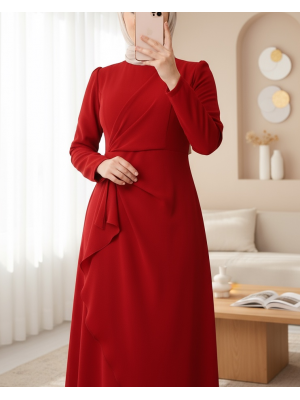 Önü Allerli Eteği Asimetrik Krep Elbise -Bordo