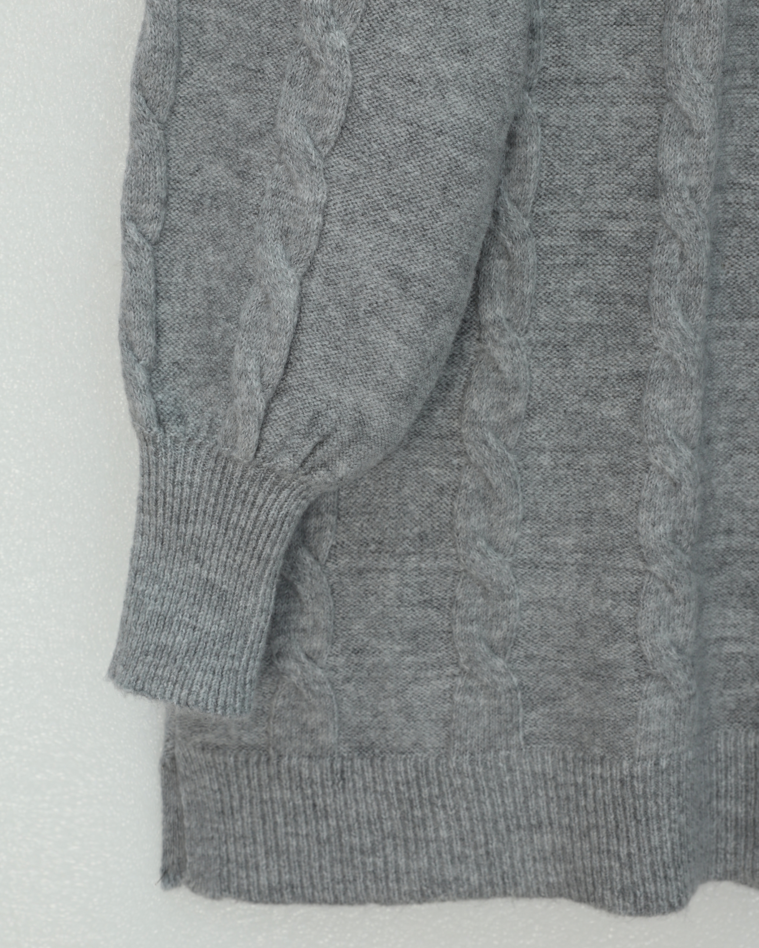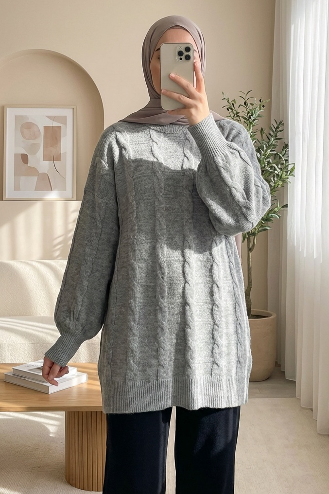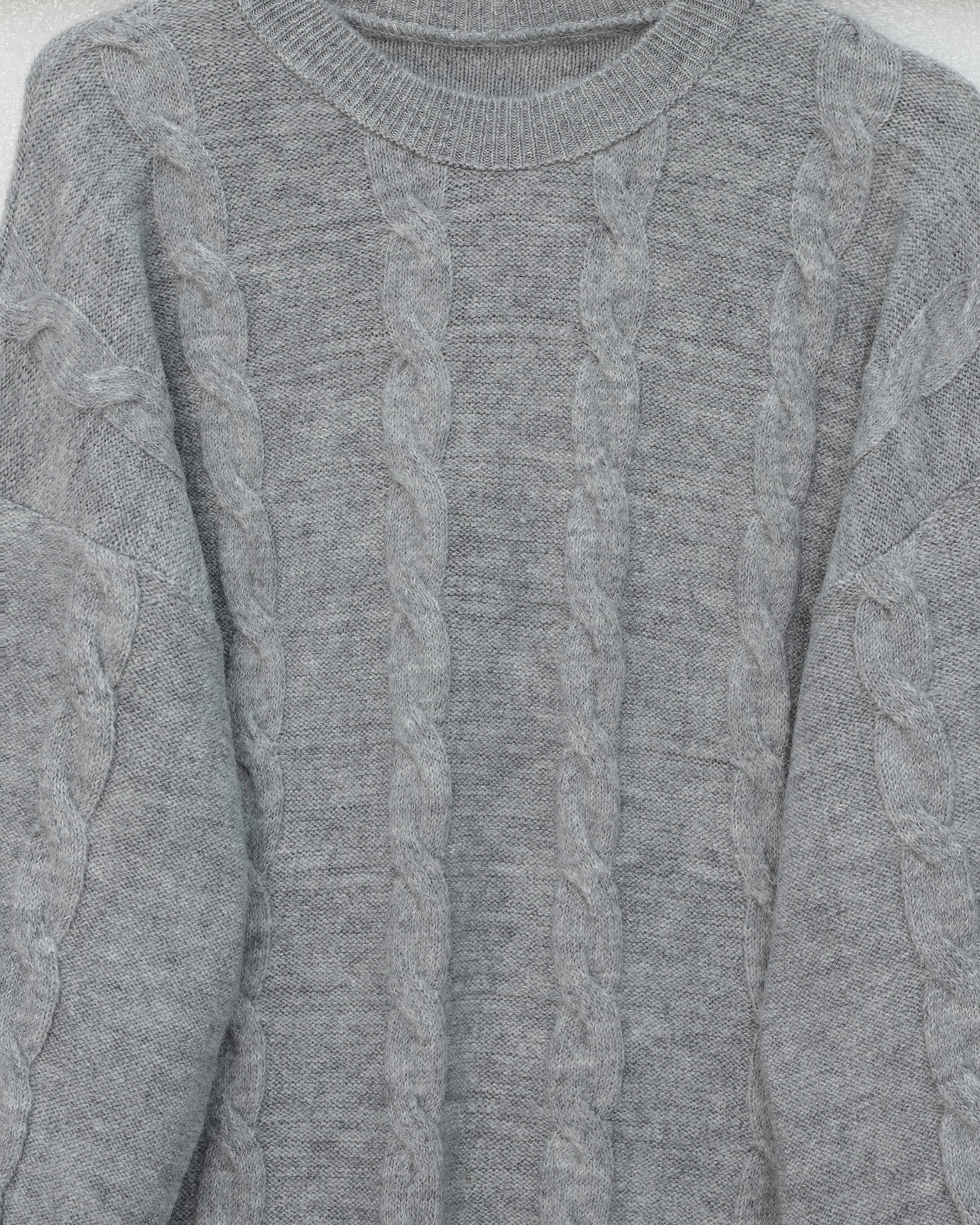 Saç Örgü Desen Yumoş Triko Kazak -Gri