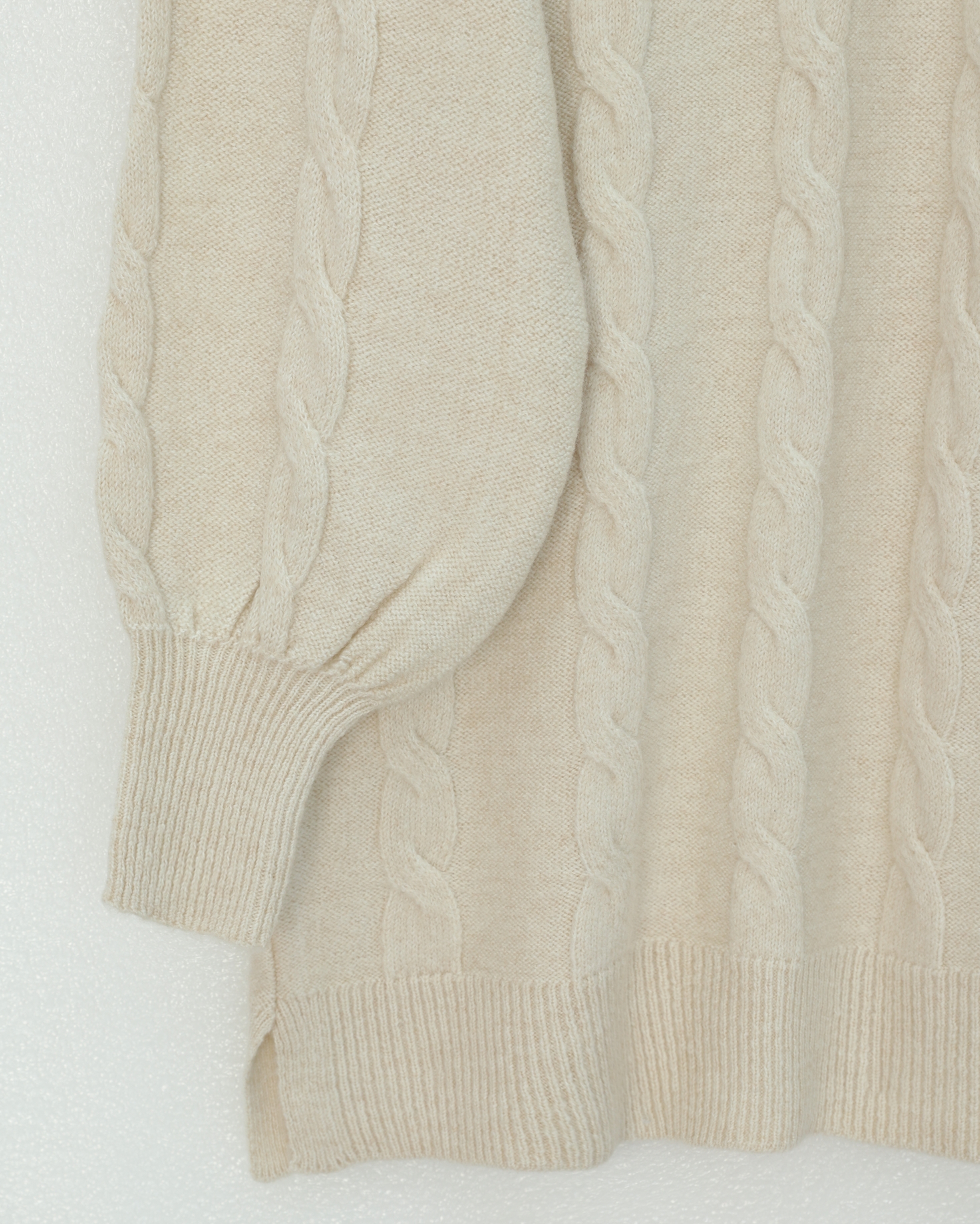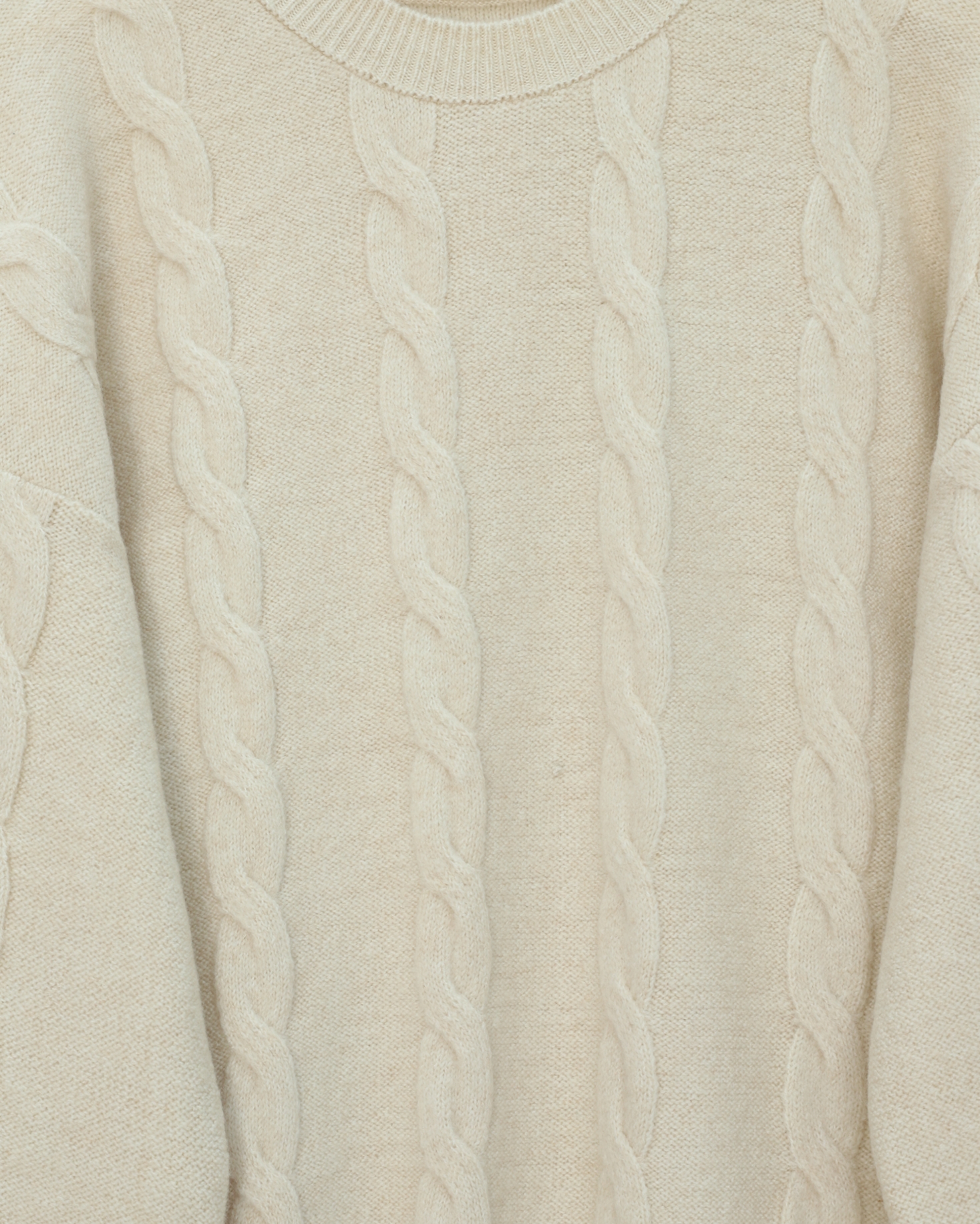 Saç Örgü Desen Yumoş Triko Kazak -Krem