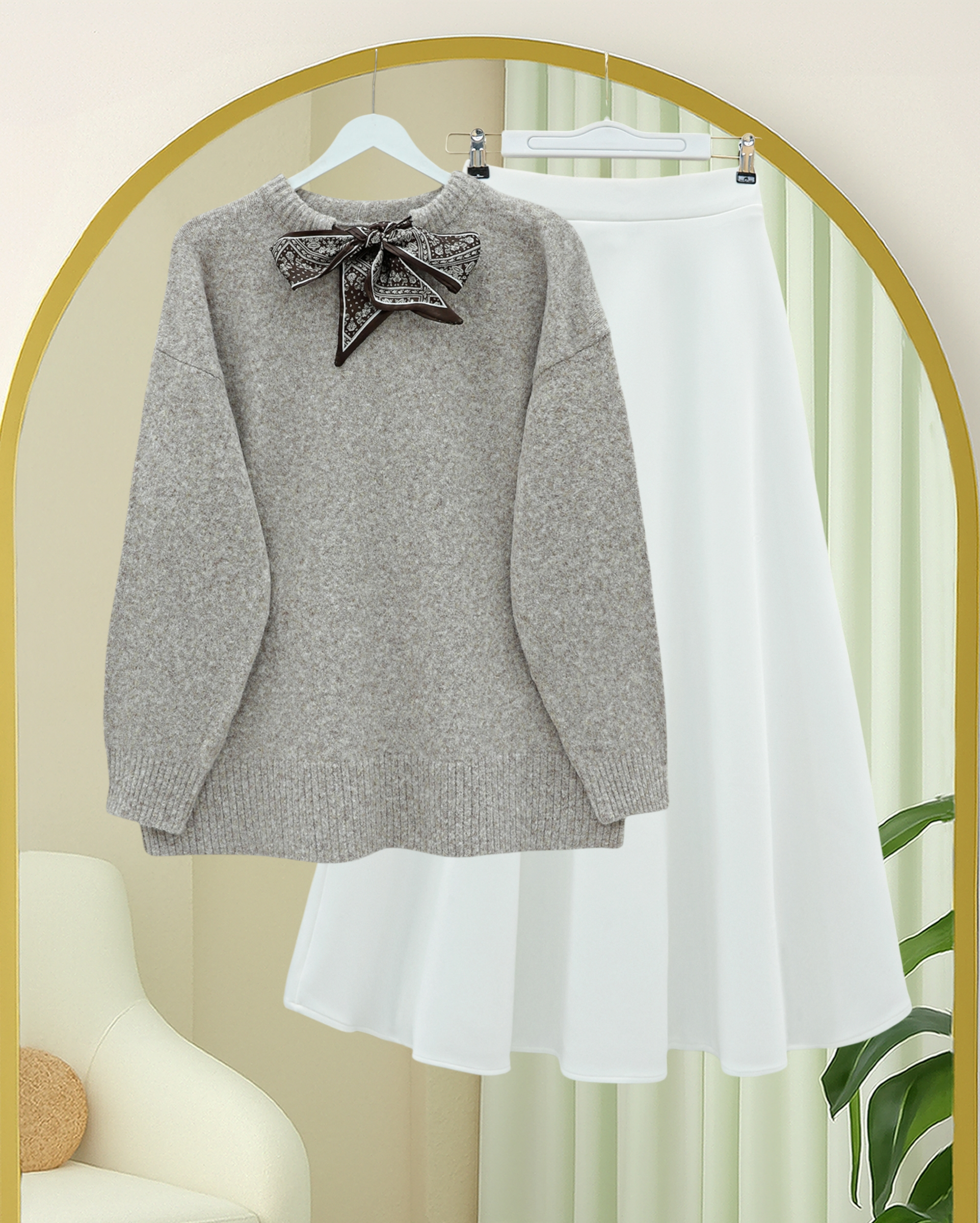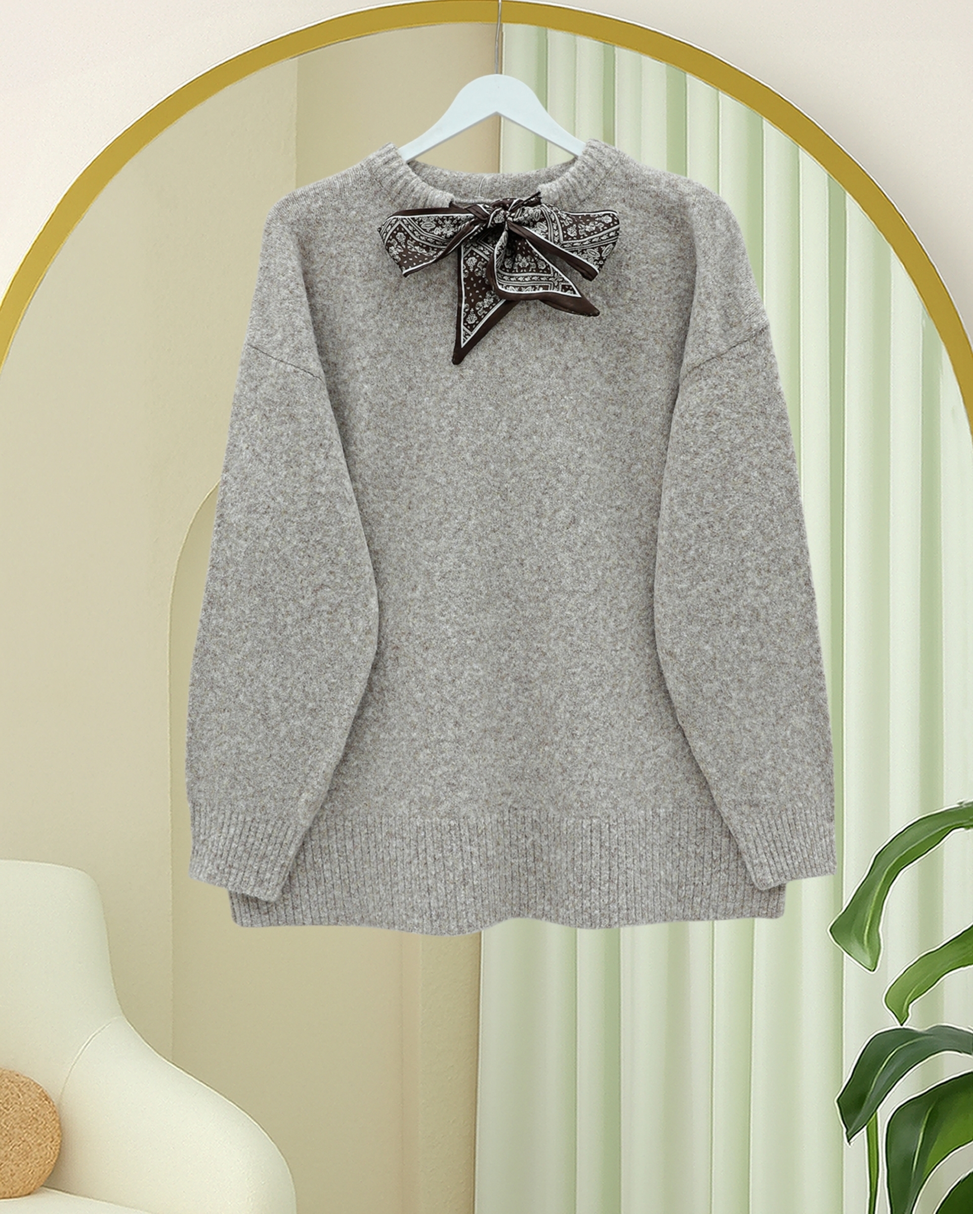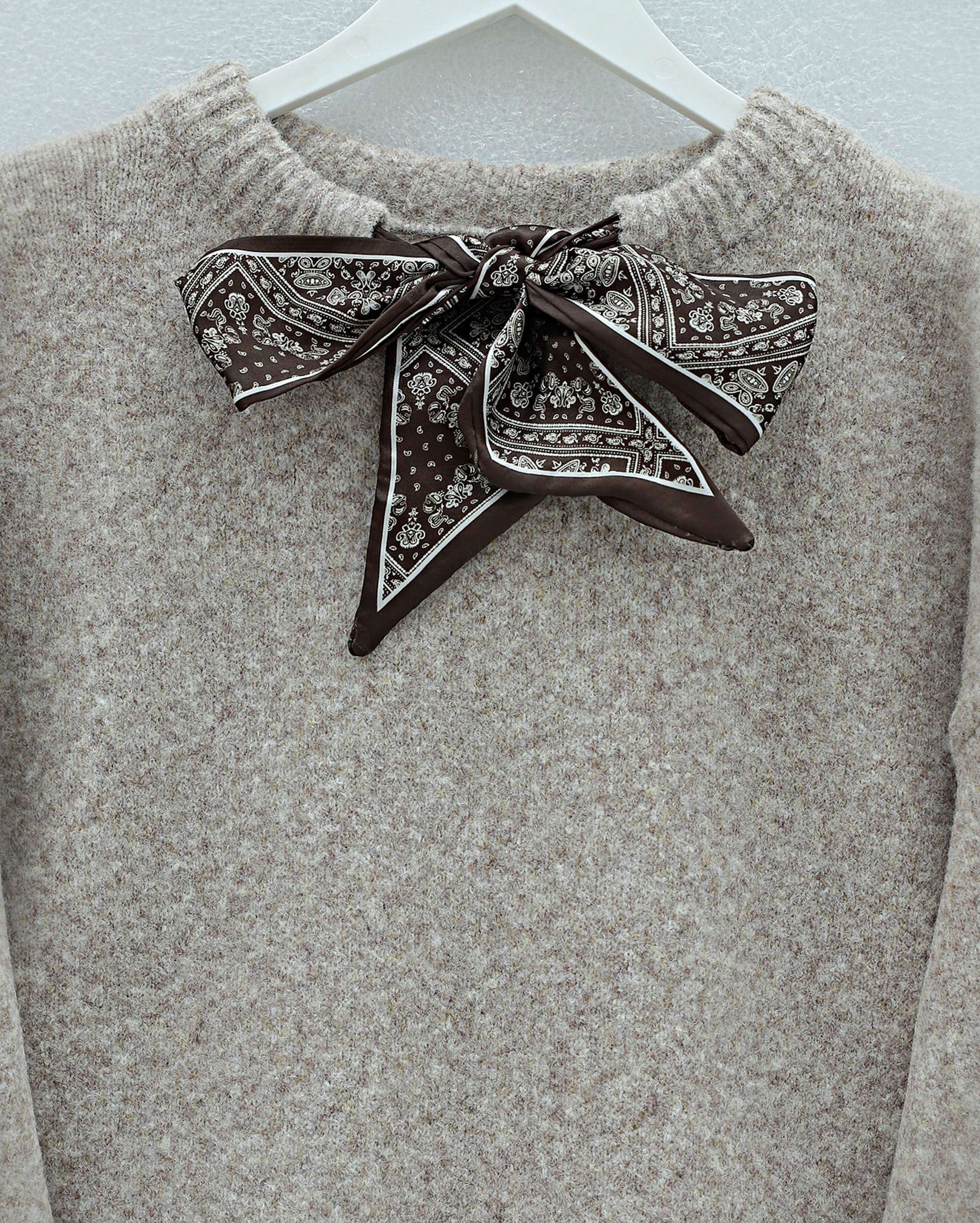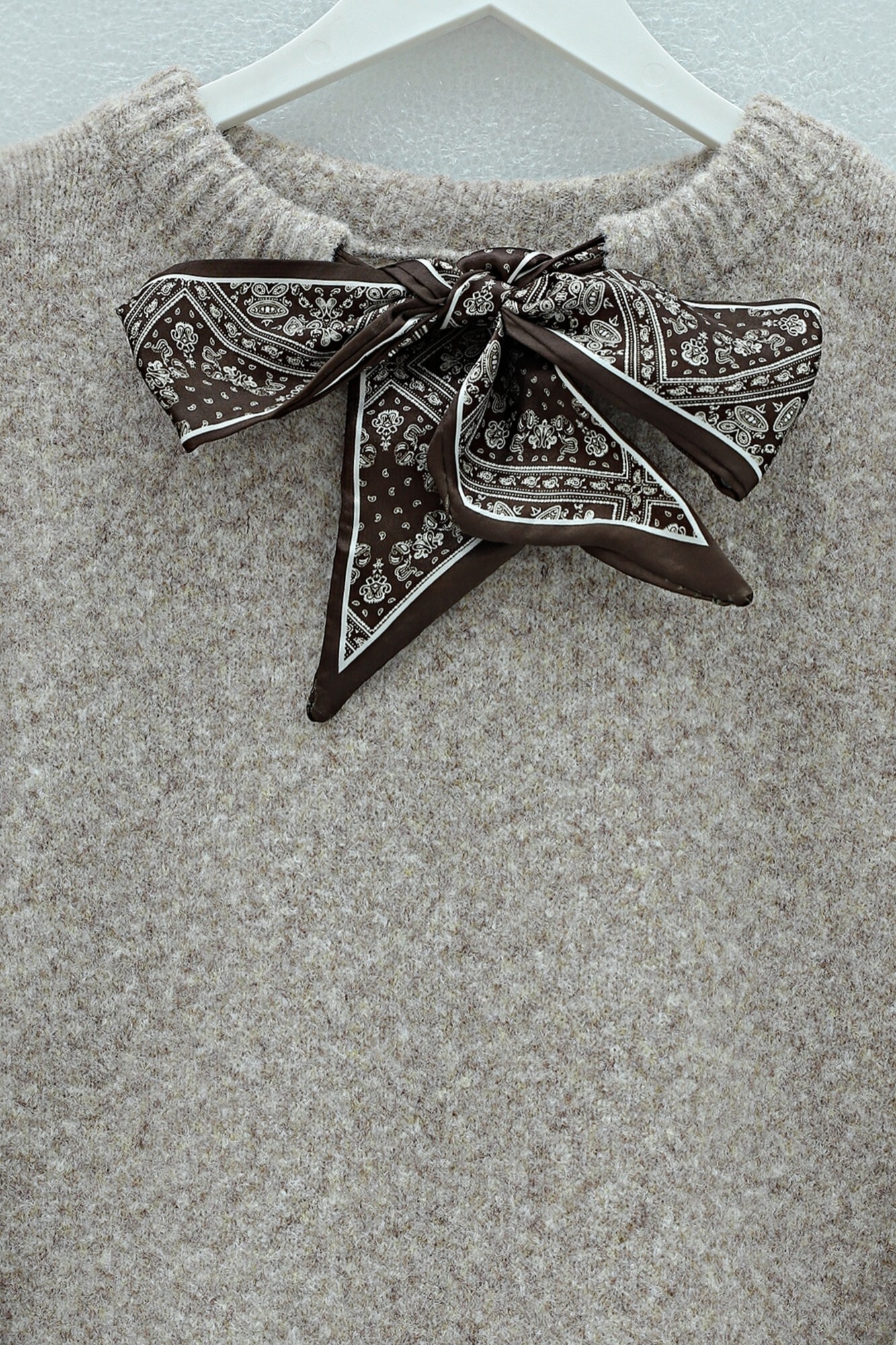 Fular detaylı triko kazak, yumoş triko kazak, kışlık triko modelleri gibi adlandırılabilir.