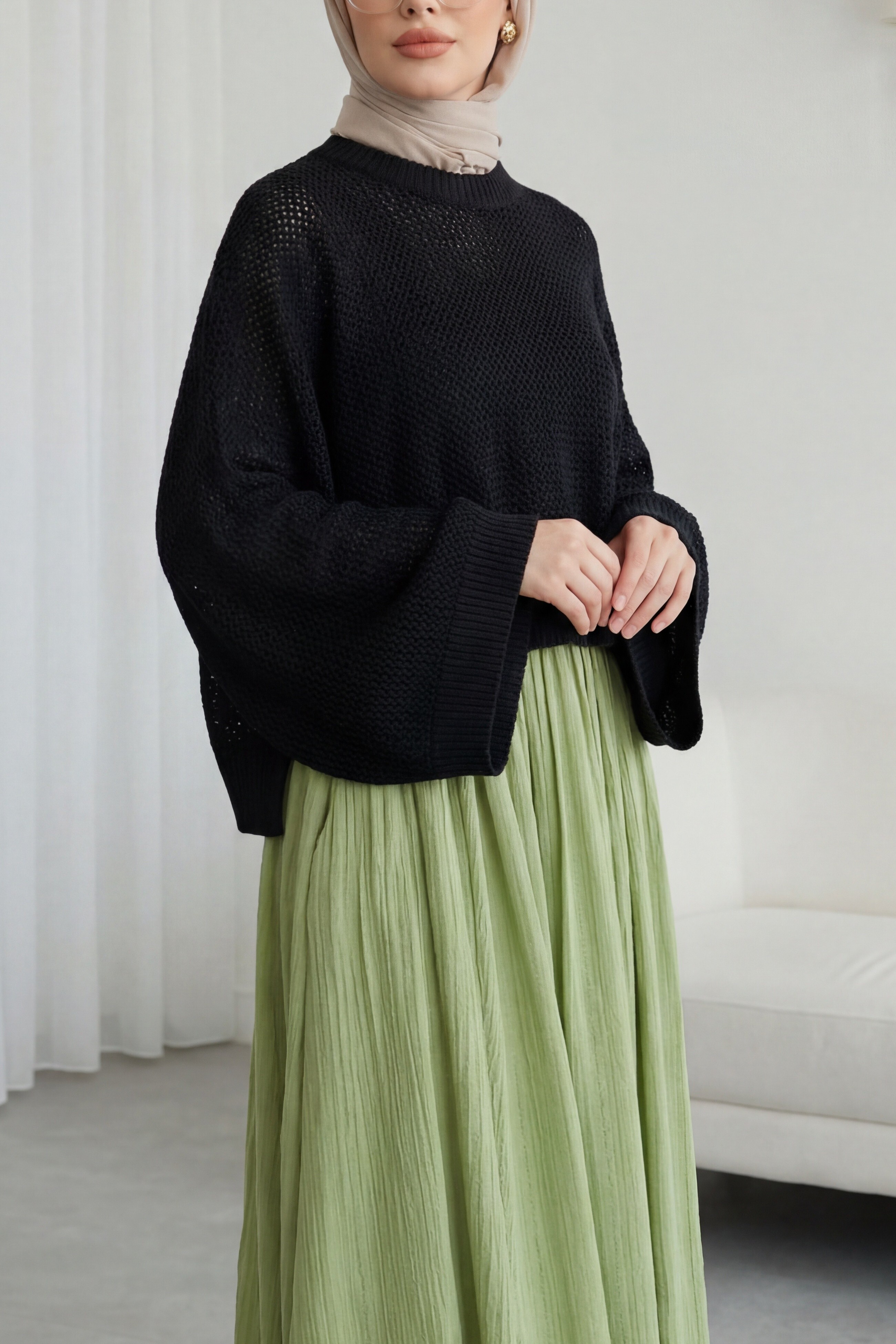 Yarasa Kol Ajurlu Triko Kazak, rahat ve modern bir stil sunar. Yarasa kol kesimi hareketli ve salaş bir duruş kazandırırken, ajurlu triko dokusu tasarıma şık bir detay katar. Yumuşak ve konforlu yapısı sayesinde günlük kombinlerde kolayca tercih edilir.