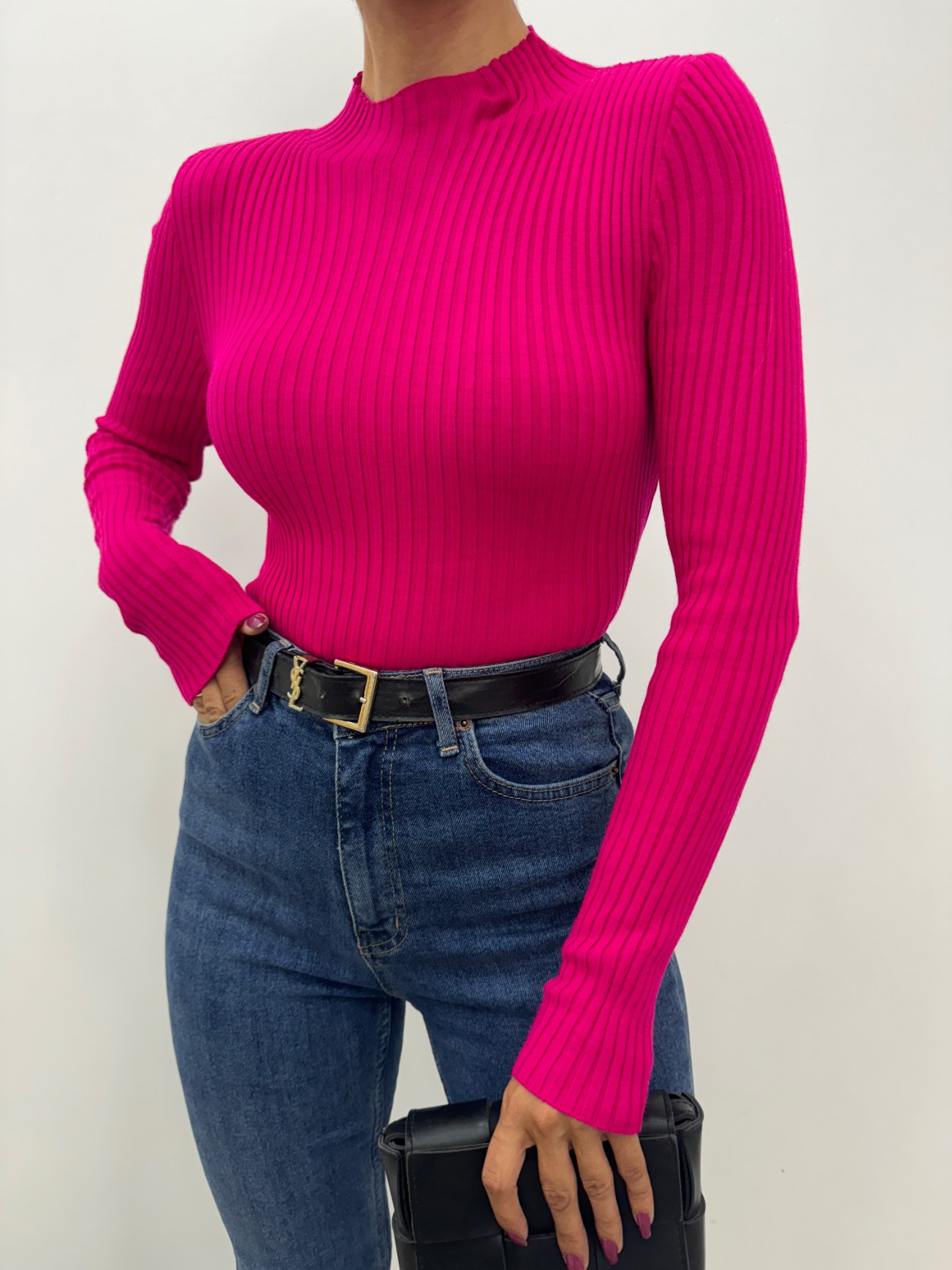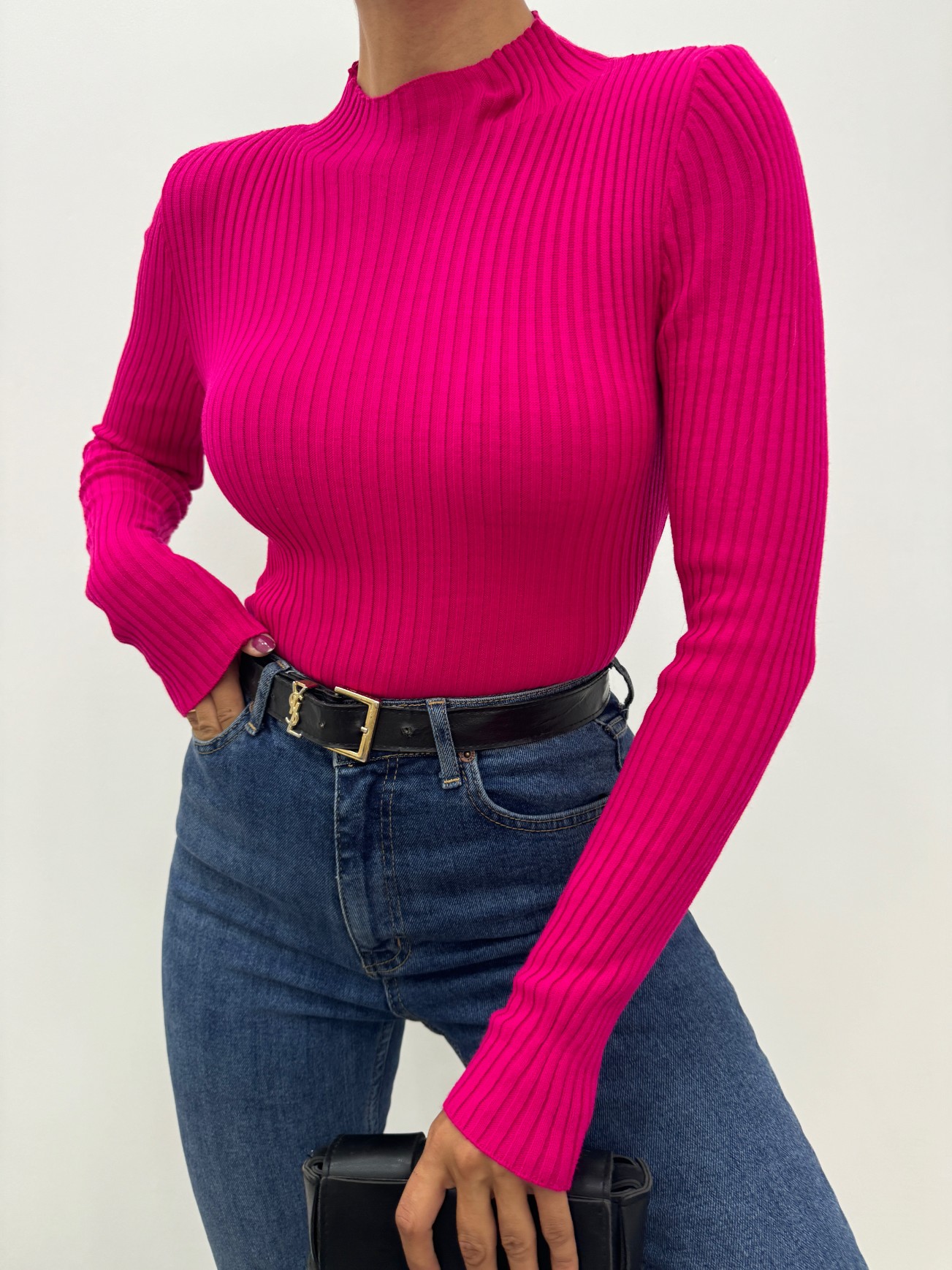 Yarım Boğazlı, Fitilli, Triko Kazak; şıklığı ve rahatlığı bir arada sunan bir parçadır. Fitilli kumaşı vücuda oturan bir kesim sağlar, yarım boğaz detayı ise sıcaklık ve stil sunar. Hem günlük kullanımda hem de şık kombinlerde rahatlıkla tercih edilebilecek bu kazak, zarif bir görünüm ve konfor arayanlar için mükemmel bir seçimdir.