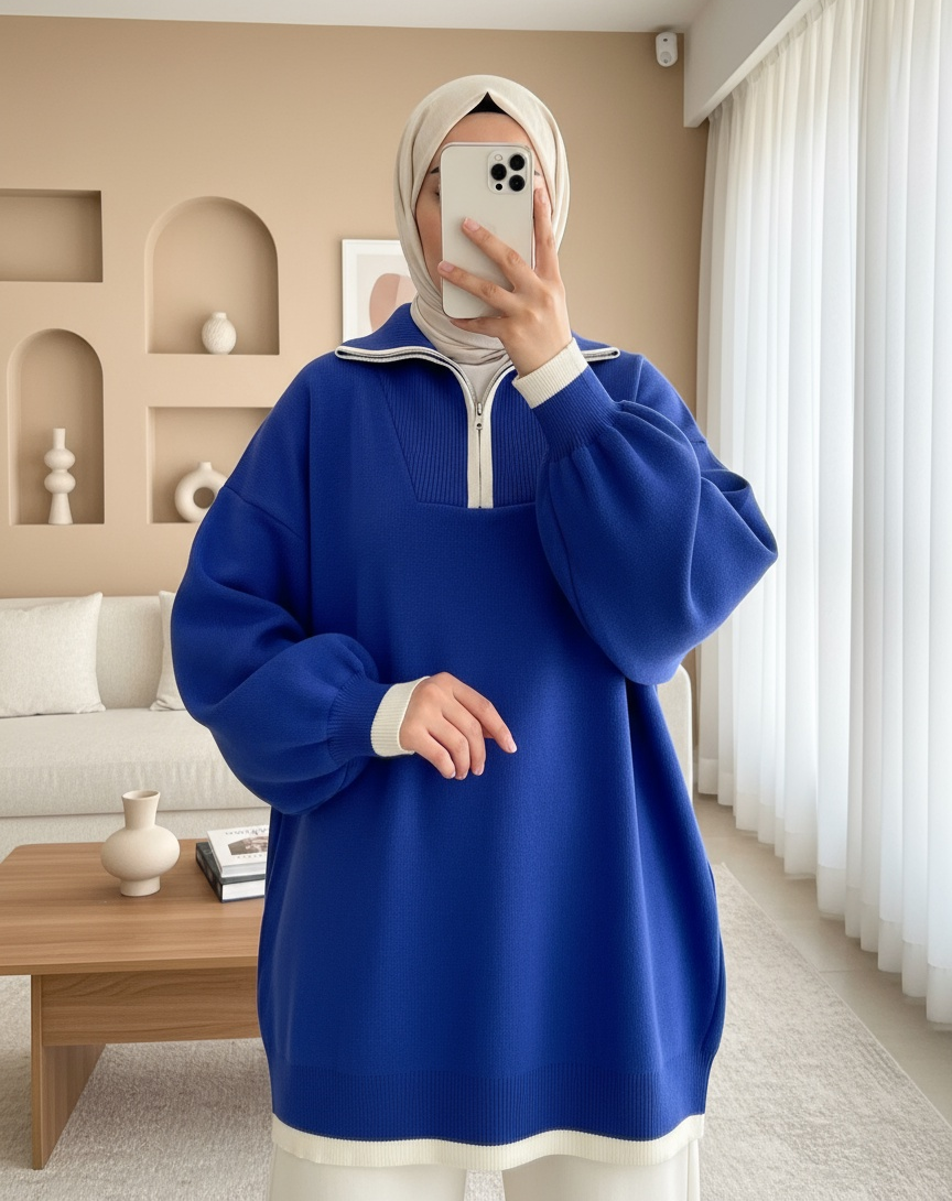 Önden yarım fermuarlı, boğazlı, kol manşeti lastikli triko tunik modelimiz yeni sezonun en çok sevilen modelleri arasında yer almaktadır.