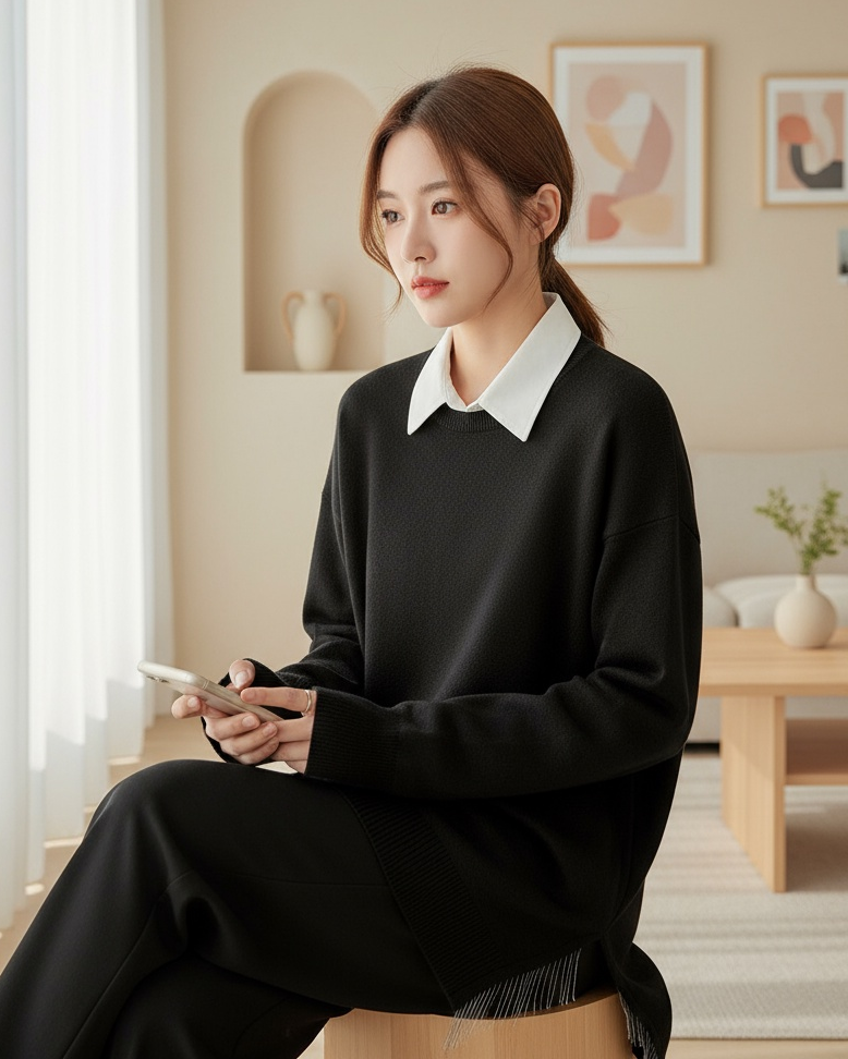 Not: Ürün içeriği kazaktan oluşmaktadır. (Pantolon, ayakkabı, çanta ve takılar dekor amaçlı kullanılmaktadır.)