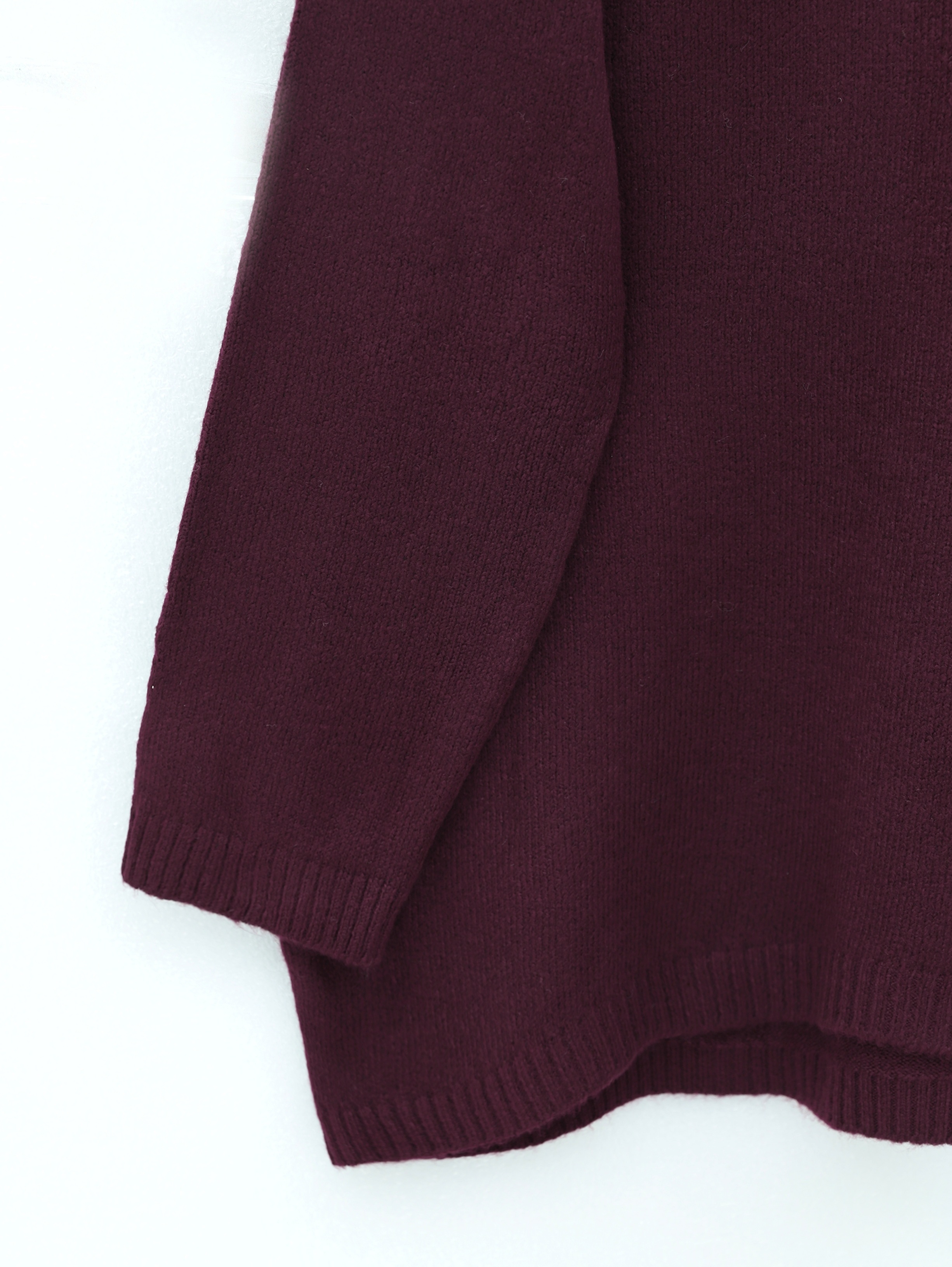 Yuvarlak Yaka Salaş Triko Kazak -Bordo