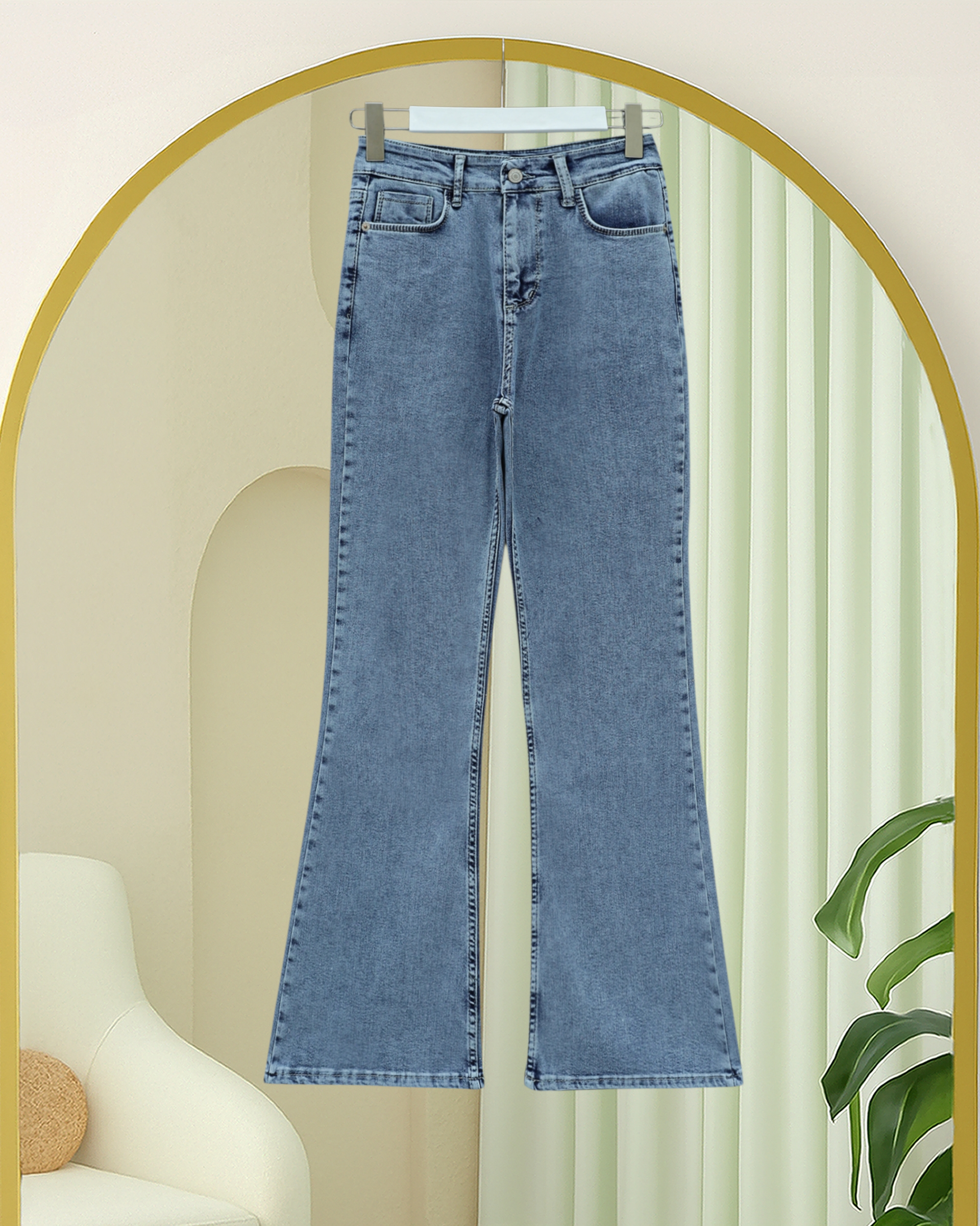 Şıklığı konforla buluşturan Cepli İspanyol Paça Likralı Fermuarlı Kot Pantolon, zamansız kot stilini modern detaylarla yeniden yorumluyor. Vücudu saran likralı kumaşı sayesinde gün boyu rahat bir kullanım sunarken, dizden aşağı genişleyen İspanyol paça kesimi ile bacak boyunu daha uzun ve zarif gösterir.