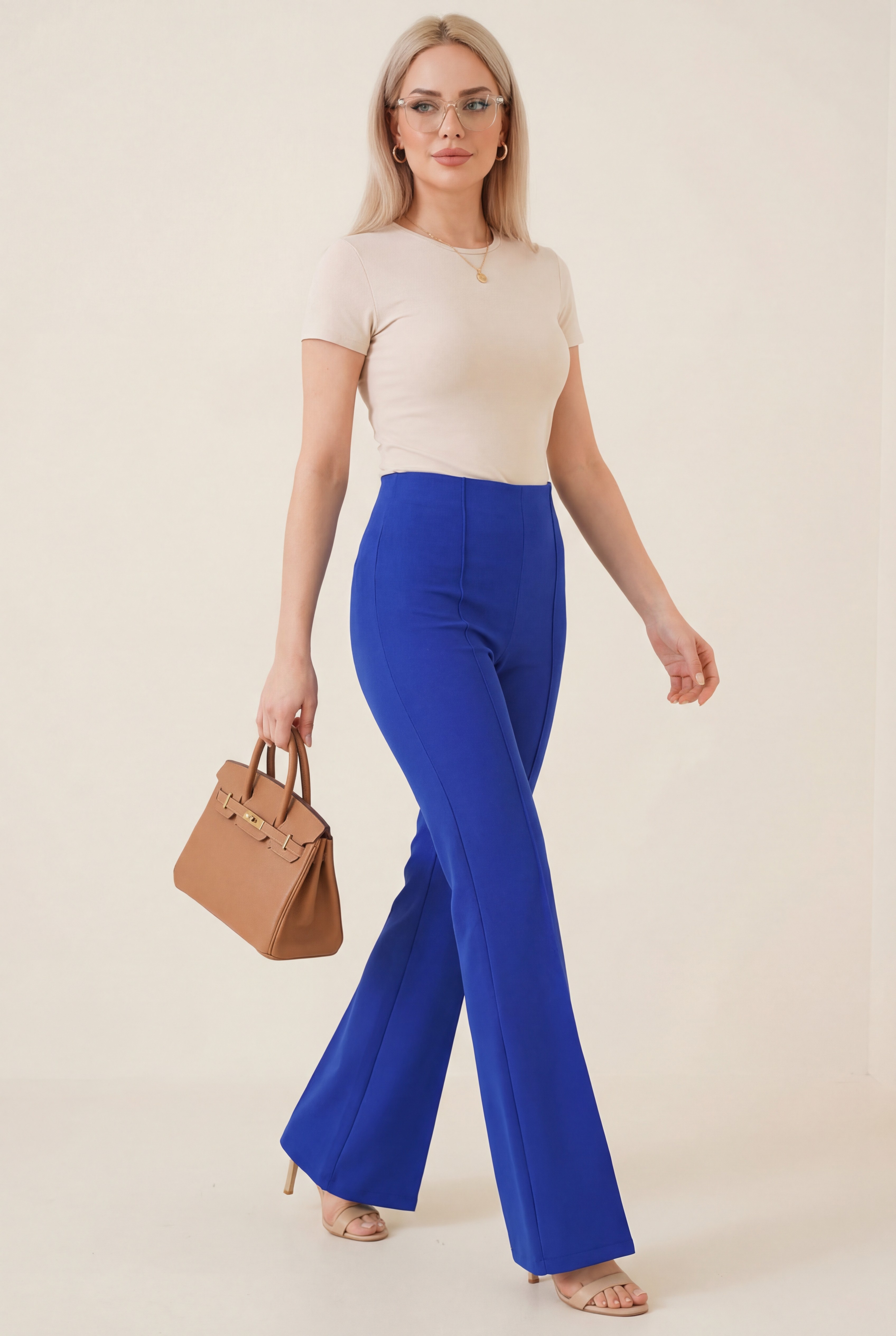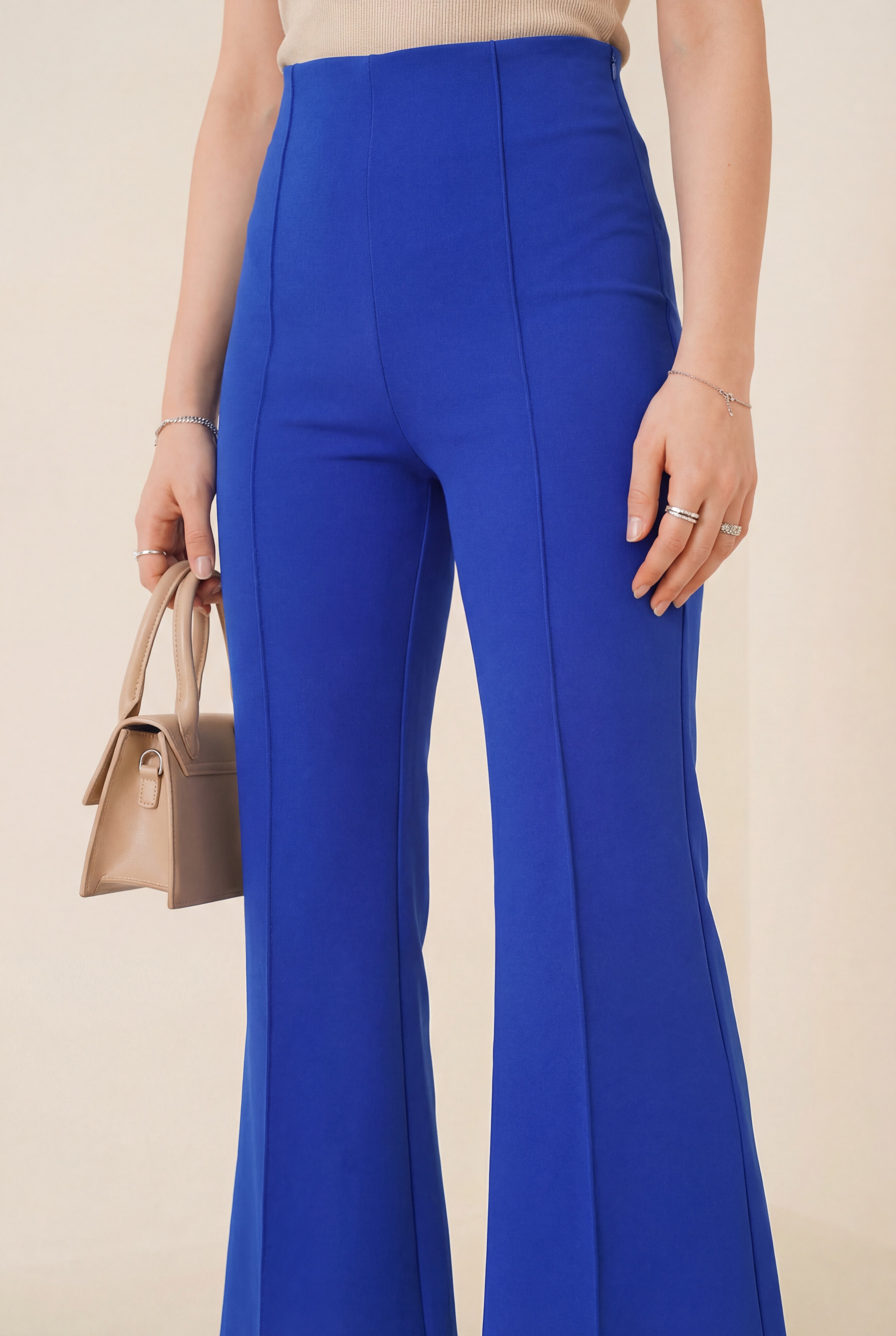 İspanyol Paça Beli Lastikli Likralı Pantolon -Saks