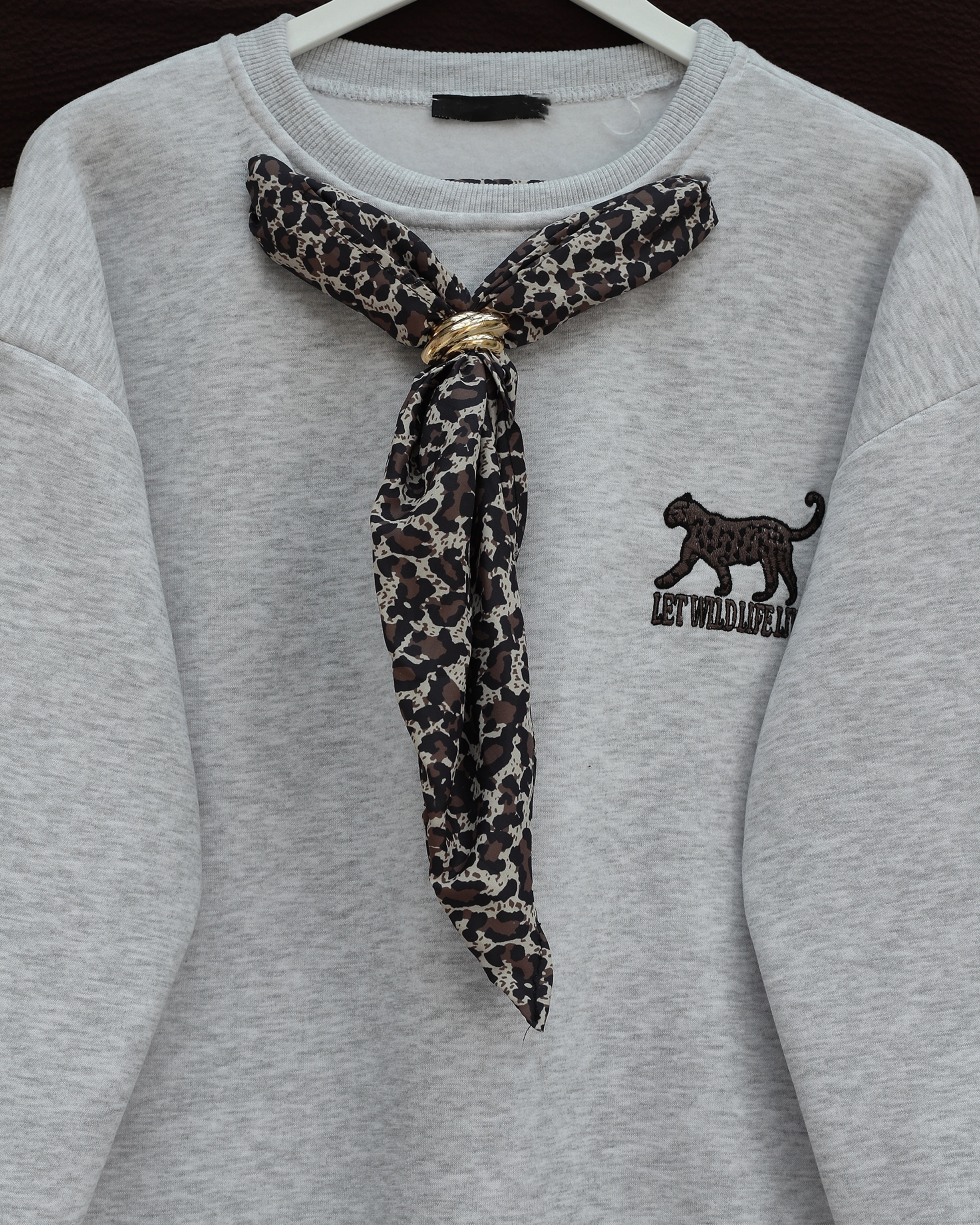 Rahat kesimi, esnek yapısı ve yumuşak dokusu sayesinde gün boyu konfor sağlar. “3 iplik sweat”, “leopar detaylı sweat”, “fularlı kadın sweatshirt” gibi adlandırılabilir.