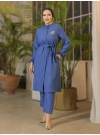 Broşlu Keten Tunik -İndigo