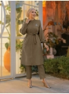 Broşlu Keten Tunik -Vizon