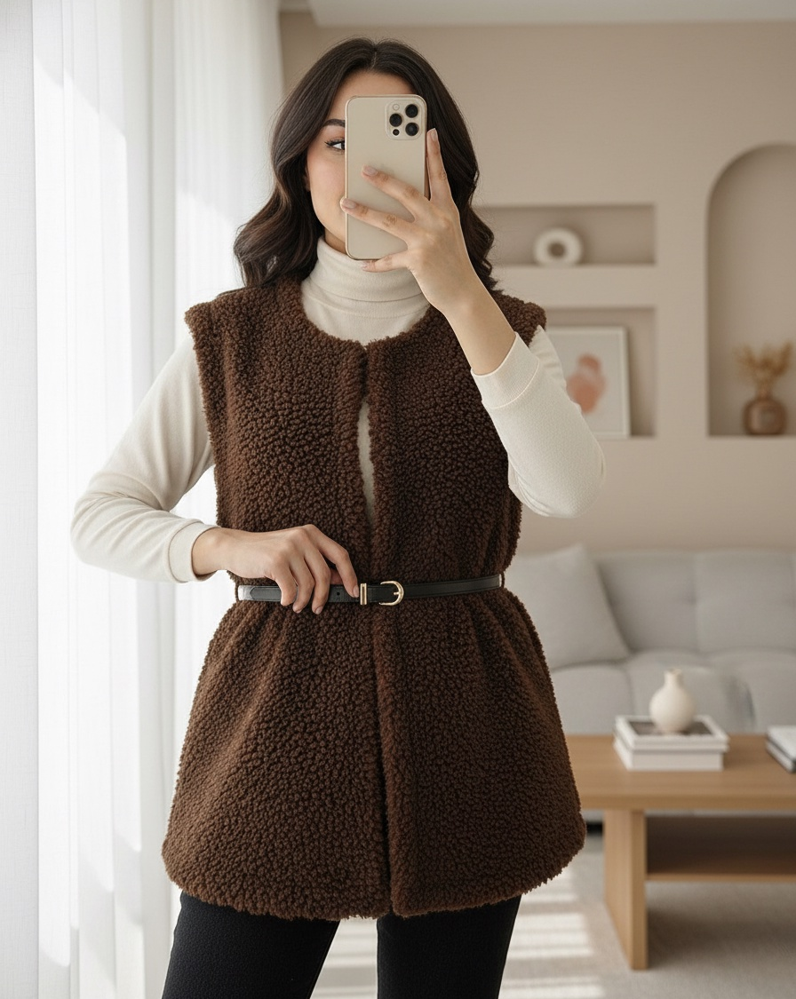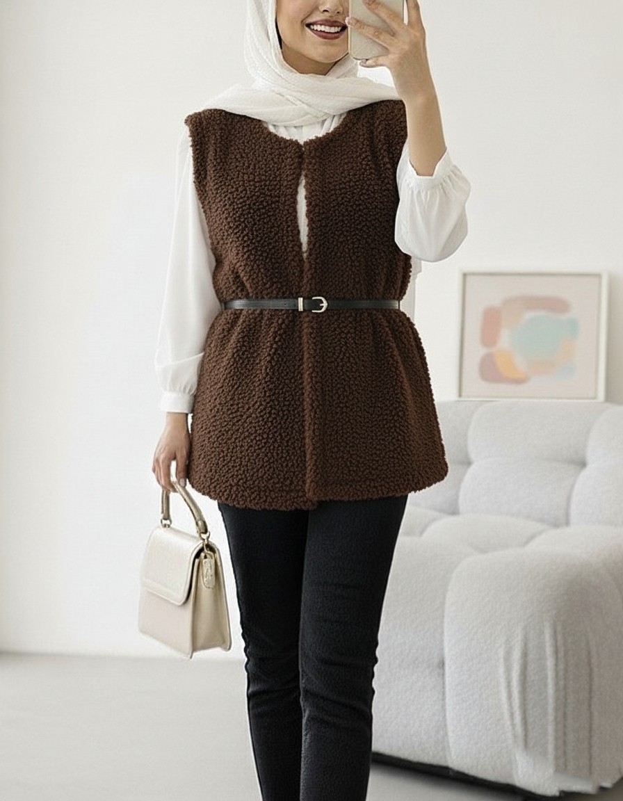 Kemerli, astarlı, peluş yelek modelimiz yeni sezonun en çok sevilen modelleri arasında yer almaktadır.