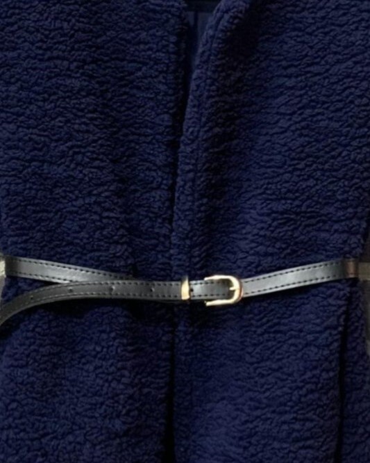 Beli Kemerli Çift Cepli Astarlı Peluş Yelek -Laci