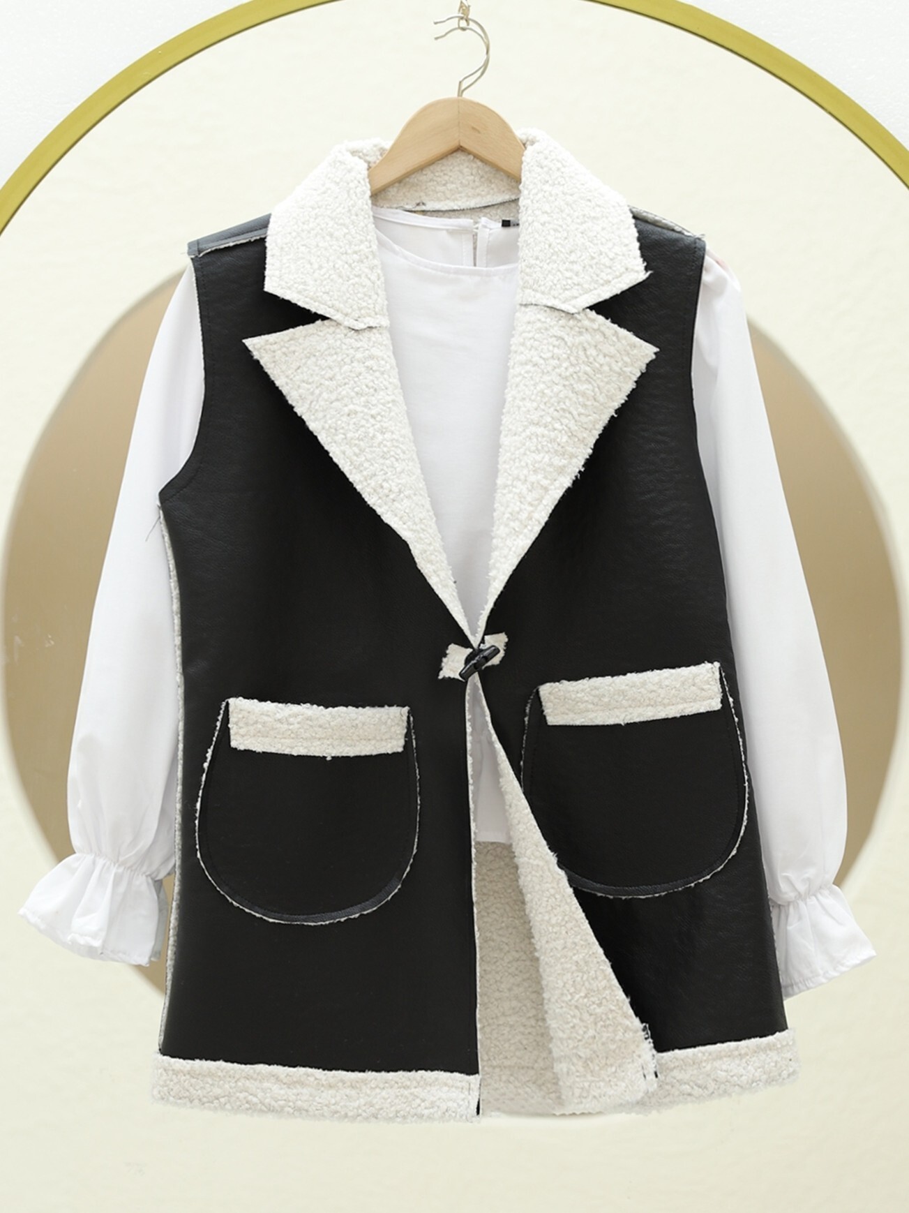 İçi Kuzu Peluş Çift Cepli Yelek -Ekru