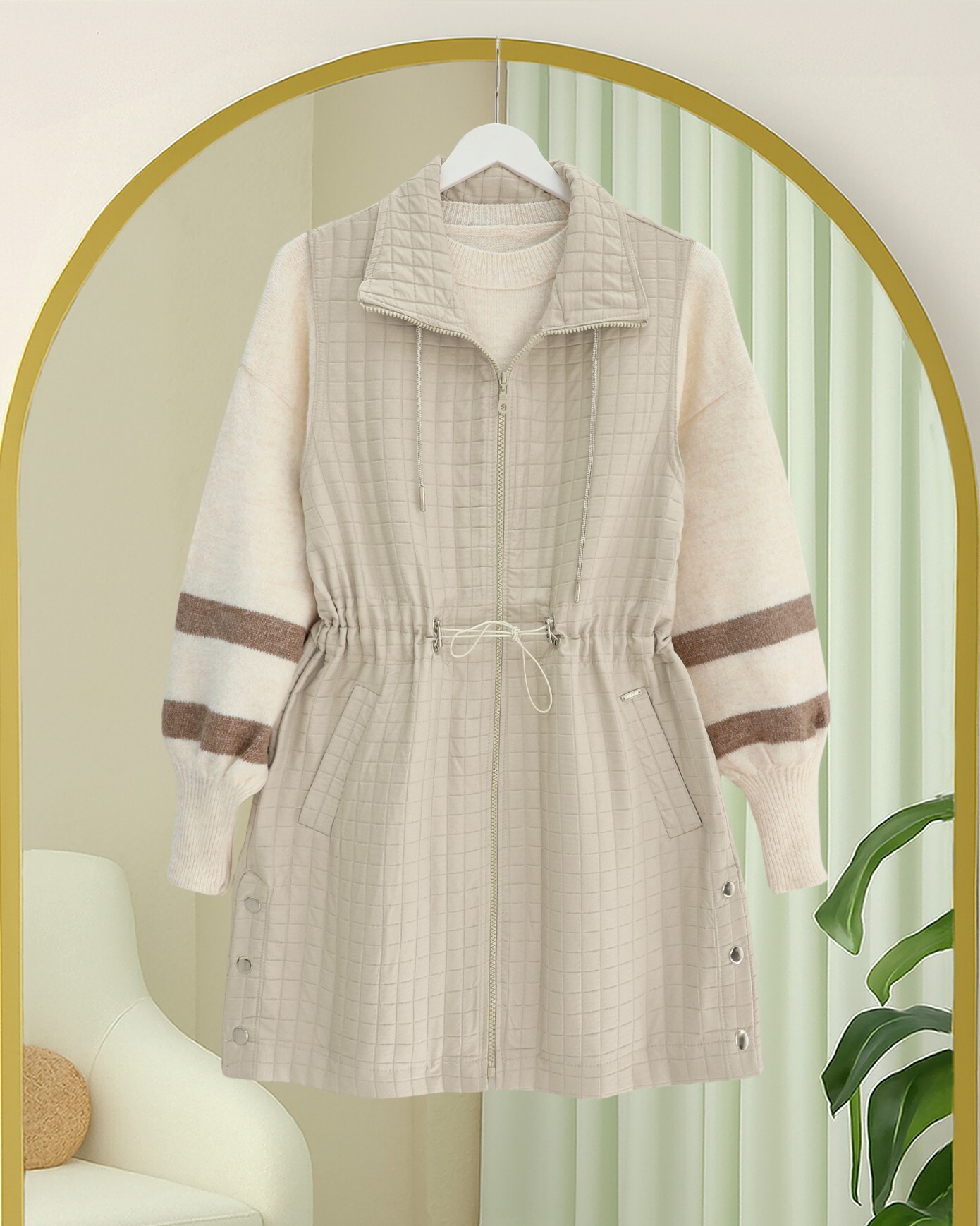 Yakası Bağcıklı Beli Lastikli Cepli Kapitone Yelek, modern tasarımı ve fonksiyonel detaylarıyla kadın giyim koleksiyonlarının öne çıkan parçalarından biridir. Kapitone dokulu kumaşı hafif ama sıcak tutar, günlük kullanımda rahatlık sağlar ve formunu uzun süre korur. Yakadaki bağcık detayı sportif bir şıklık katarken, beli lastikli tasarım vücuda uyum sağlayarak zarif bir siluet oluşturur. Cepli yapısı ise hem pratik hem de şık bir kullanım sunar.