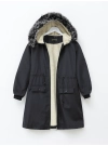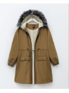 Sabit Kapşonlu İçi Kürklü Bondit Kaban -Taba