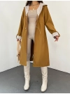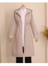 Tünel Bağcıklı Kapşonlu Trenckot -Taba