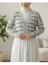 Çizgili Yarım Boğazlı Balon Kol Triko Tunik -F.Yeşili