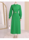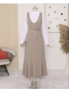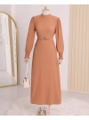 Kemeri Zincir Detaylı Krinkıl Tesettür Elbise -Somon