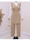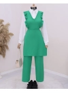 Önü Fırfırlı Yarım Düğmeli Gömlek Yaka İkili Krınkıl Takım -Yeşil