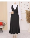 Yakası Taşlı Kemerli Eteği Fırfırlı Jile -Siyah