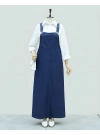 Cep Detaylı Askılı Kot Salopet -Koyu Mavi