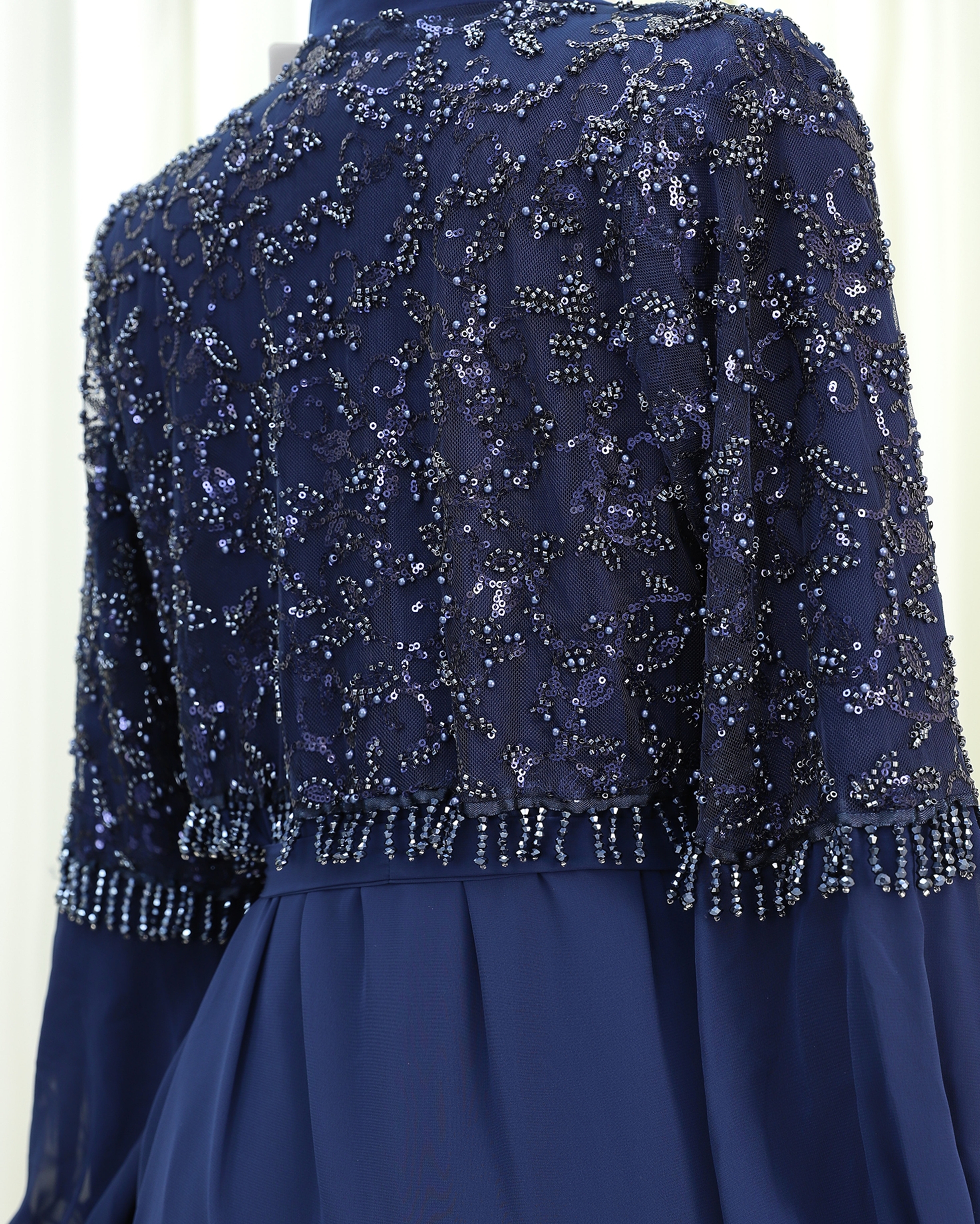 Zarif detaylarıyla modern şıklığı bir araya getiren Boncuklu Kemerli İkili Abaya Takım, özel günlerden günlük kombinlere kadar geniş bir kullanım alanı sunan seçkin bir parçadır. Abayanın ön bölümündeki ince işçilikle hazırlanmış boncuk detayları, tasarıma feminen bir ışıltı kazandırırken belde yer alan kemer, vücut formunu zarif şekilde vurgular. Akıcı kumaş dokusu ve dökümlü silueti sayesinde her bedende şık ve düzenli bir duruş sağlar.