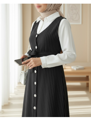 Taş ve İnci Detaylı Kemerli İkili Tül Abaya Takım, zarif taş ve inci süslemeleriyle ışıltılı bir görünüm sunar. Kemerli tasarımı ve tül dokusuyla şık, modern ve akıcı bir siluet oluşturan takım, özel davetler ve günlük şıklık için ideal bir tercihtir.