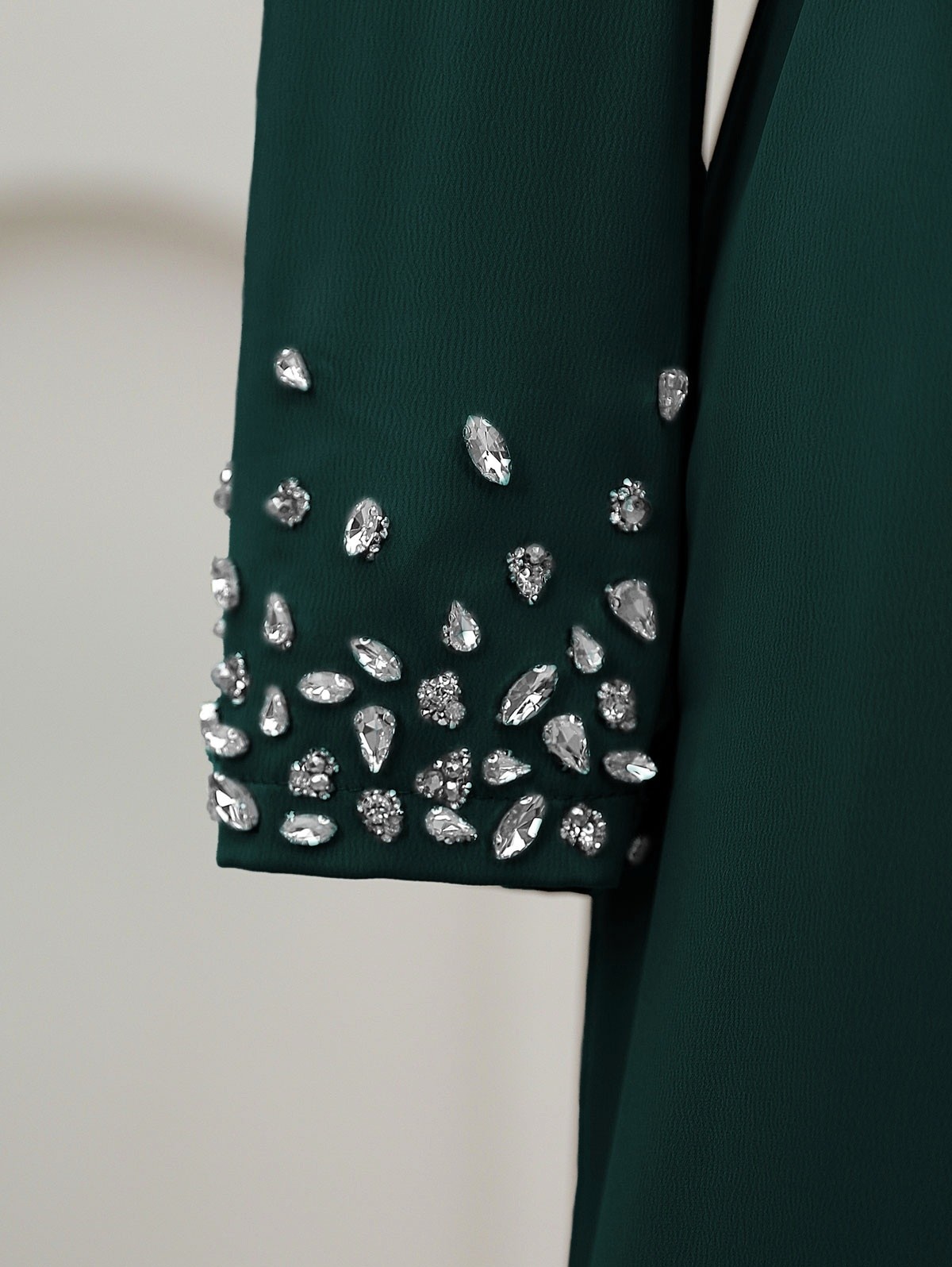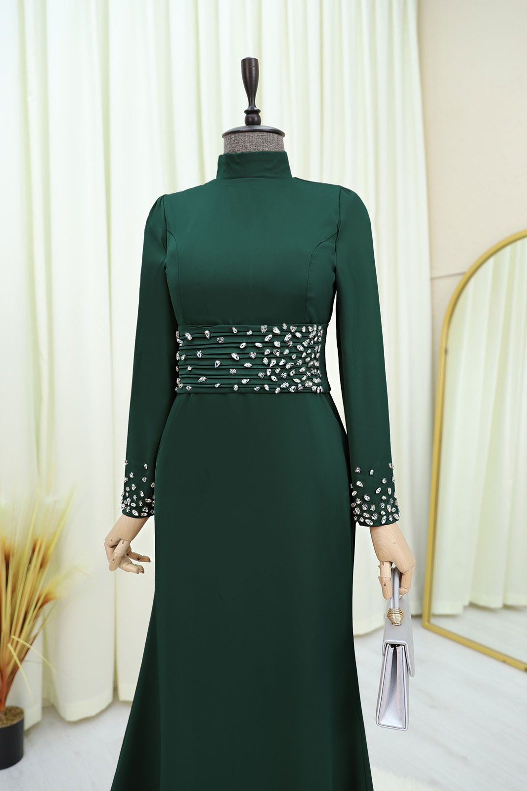 Korse kemerli taşlı saten abiye, zarif ve şık bir seçenek sunar. Korse detaylı tasarımı vücut hatlarınıza mükemmel uyum sağlar, kemerli bölümü ise belinizi ince gösterir. Taşlı süslemeler, abiyeye ışıltılı bir dokunuş katarak gece boyunca göz alıcı bir görünüm sunar. Saten kumaşı, şıklığı ve rahatlığı bir arada sunarken, özel davetler ve gece etkinlikleri için mükemmel bir tercihtir.