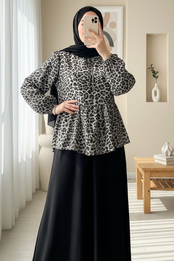Kadin Desenli Uzun Kol Bluz