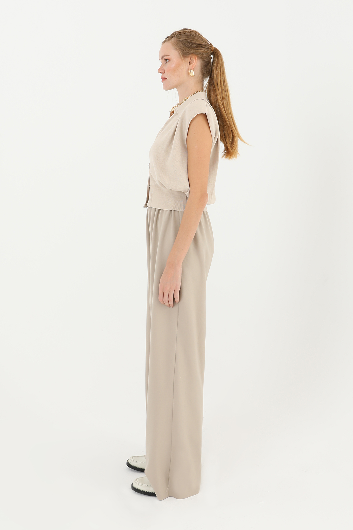 Beli Lastikli Boydan Düğmeli Ceket Pantolon Kot Takım -Buz Mavi