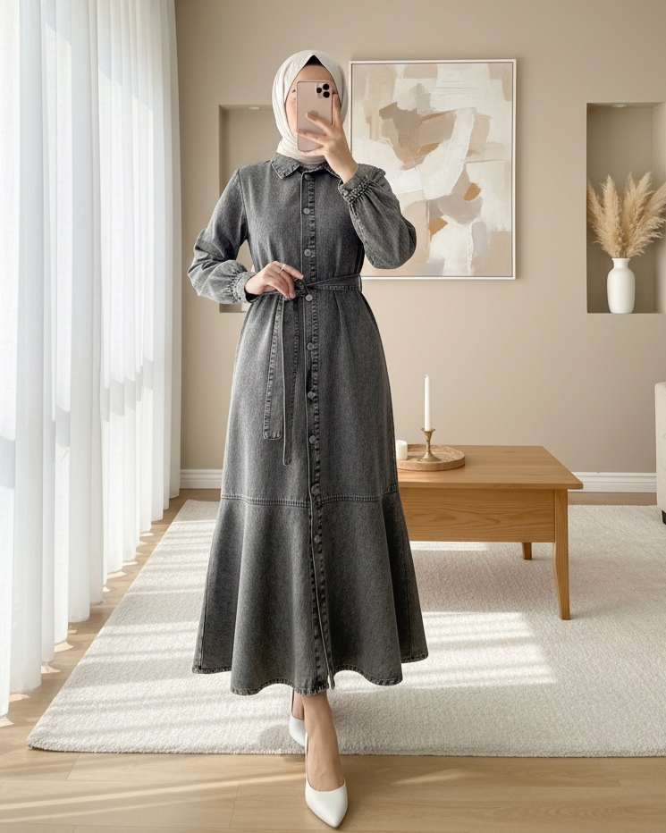 Boydan Düğmeli, Eteği Fırfırlı, Kot Elbise; zarif ve feminen bir görünüm sunar. Boydan düğmeli tasarımı, klasik ve şık bir hava katarken, eteğindeki fırfır detayları elbiseye hareketlilik ve zarafet katar. Kot kumaşı ise rahat ve şık bir seçenek sunar. Hem günlük kullanıma hem de özel davetlere uygun olan bu elbise, stilinizi mükemmel bir şekilde tamamlar.