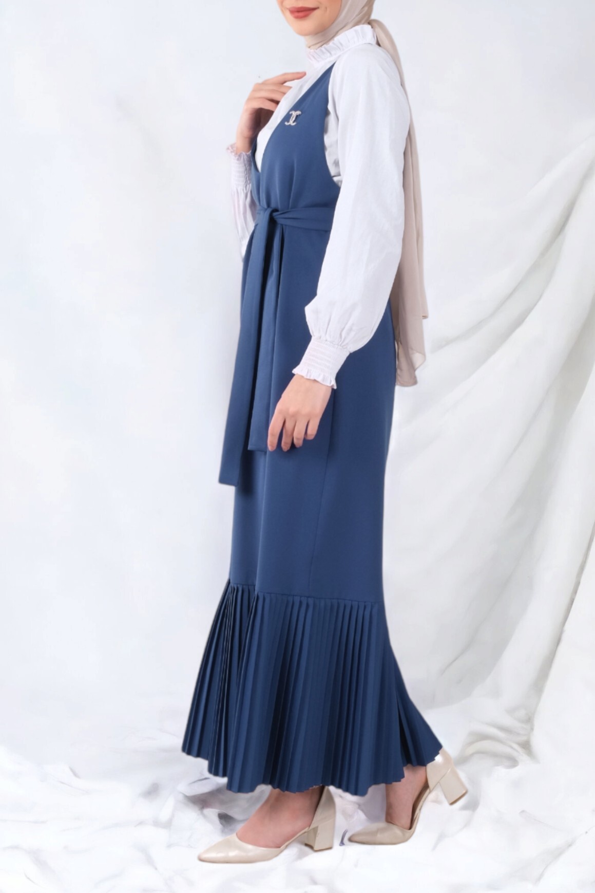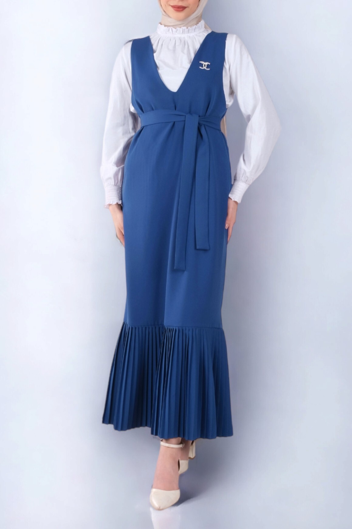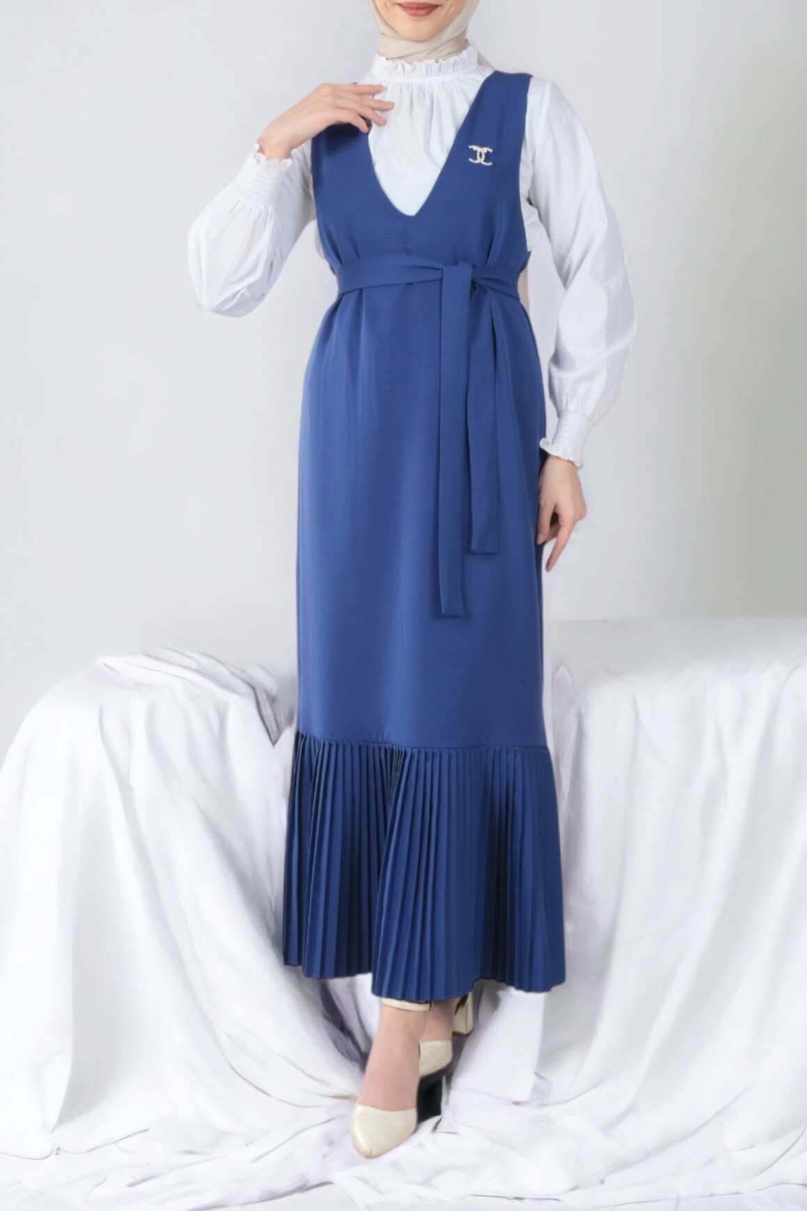 Eteği Piliseli Kuşaklı Jile -İndigo