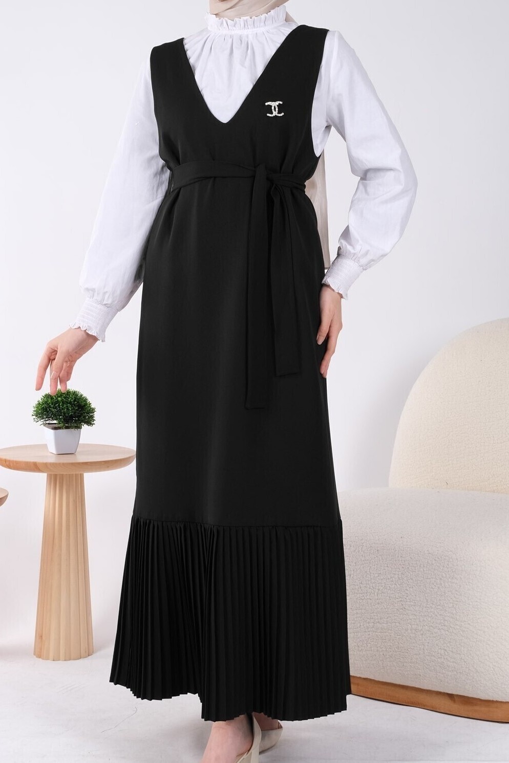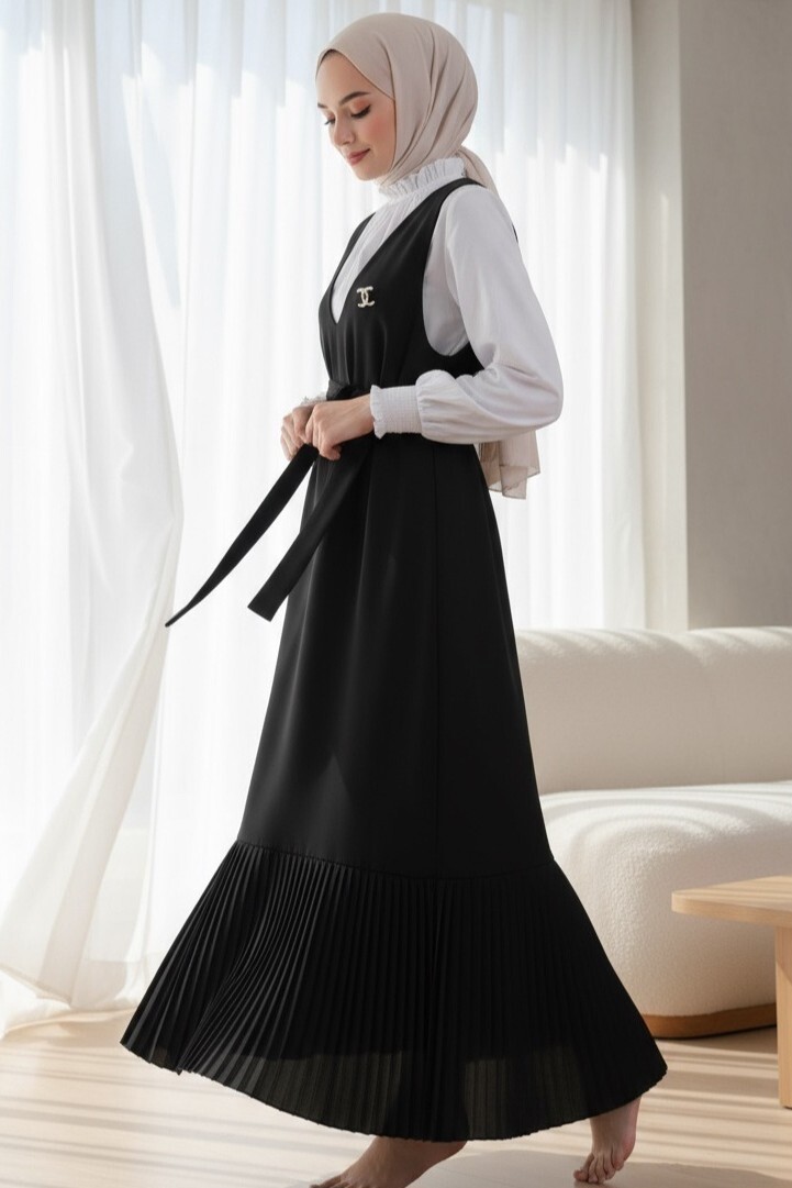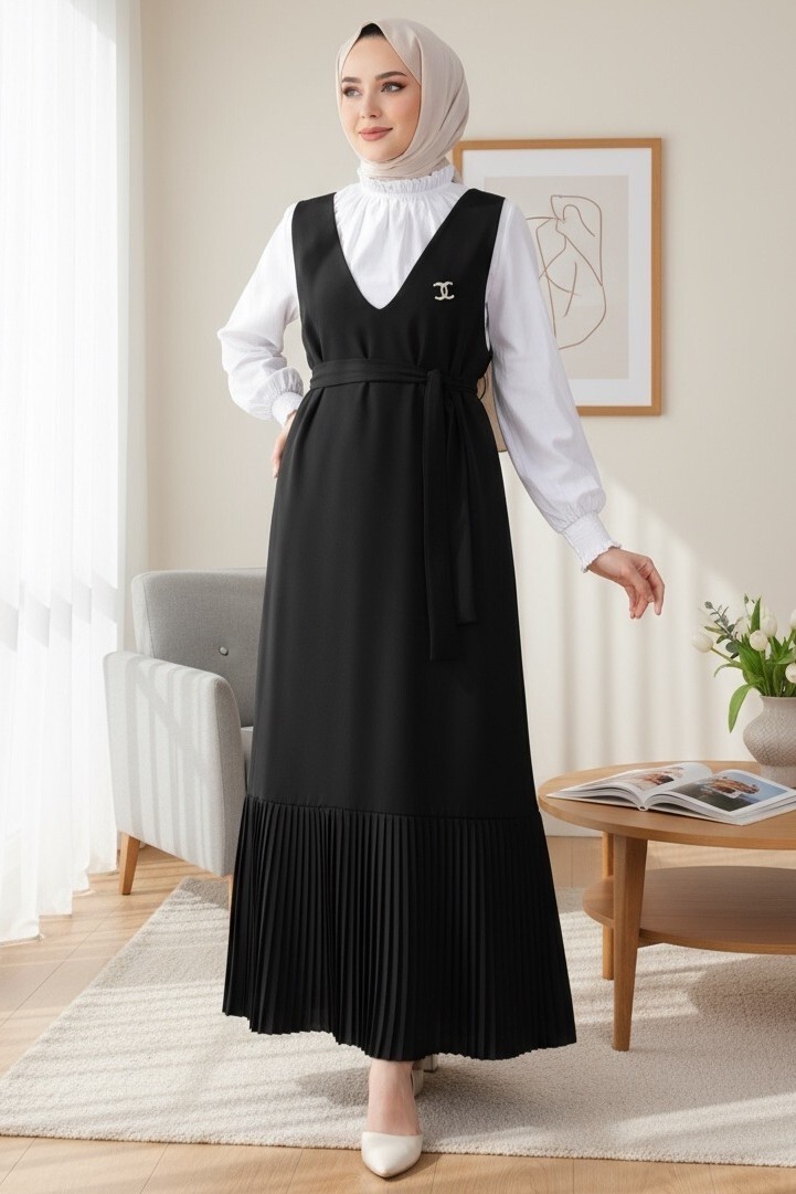Eteği Piliseli Kuşaklı Jile -Siyah