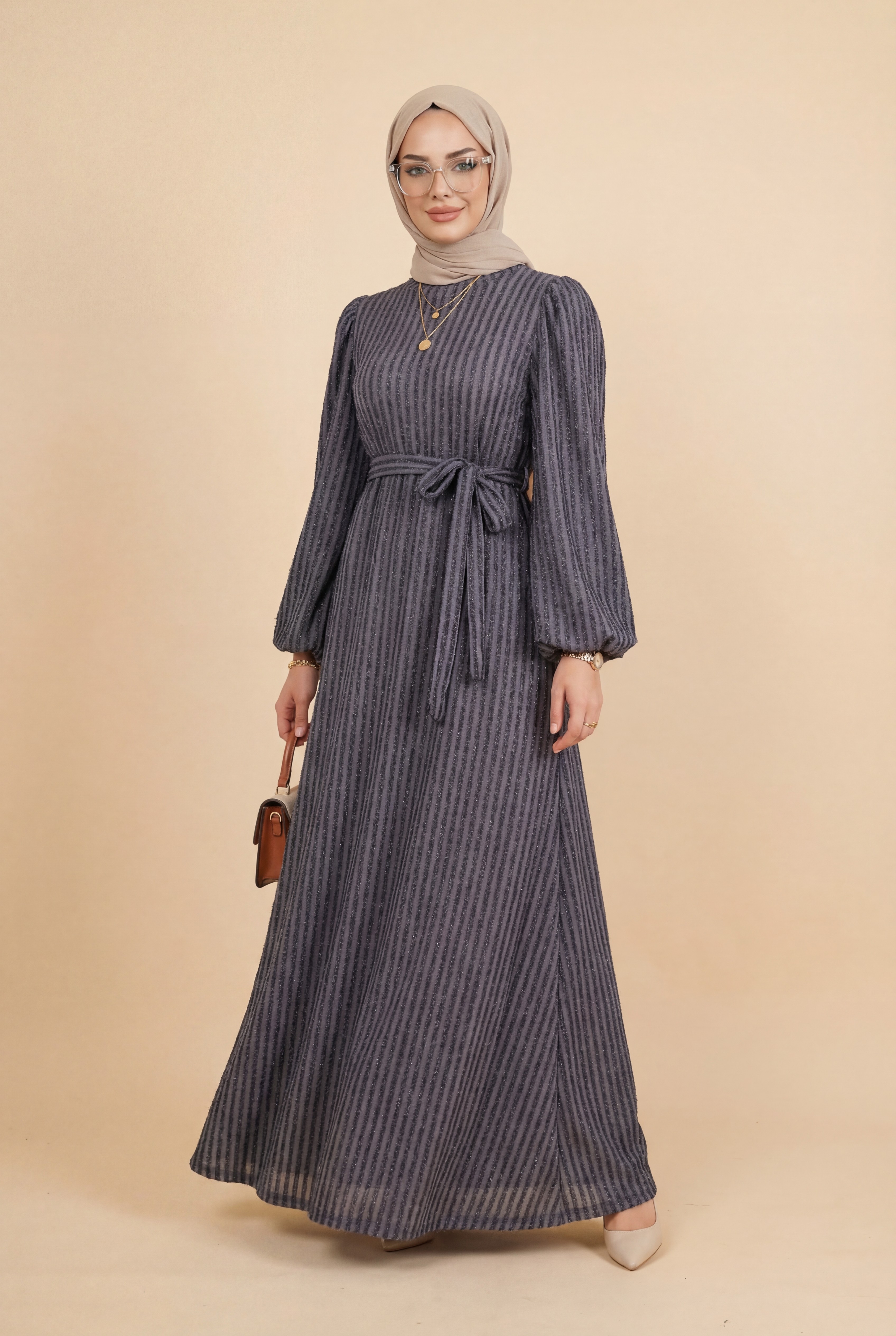 Kolu Lastikli Sim Çizgili Kemerli Elbise, zarif ve şık bir tasarıma sahip, modern bir elbise seçeneğidir. Lastikli kolları, elbiseye rahatlık ve şıklık katarken, simli çizgiler ile ışıl ışıl bir görünüm sunar. Kemer detayı, vücut hatlarını zarifçe sarar ve şık bir siluet oluşturur. Hem günlük kullanımda hem de özel etkinliklerde tercih edilebilecek bu elbise, zarif ve modern tarzı bir arada sunar. Yüksek kaliteli kumaşıyla rahatlık ve şıklığı birleştirir.