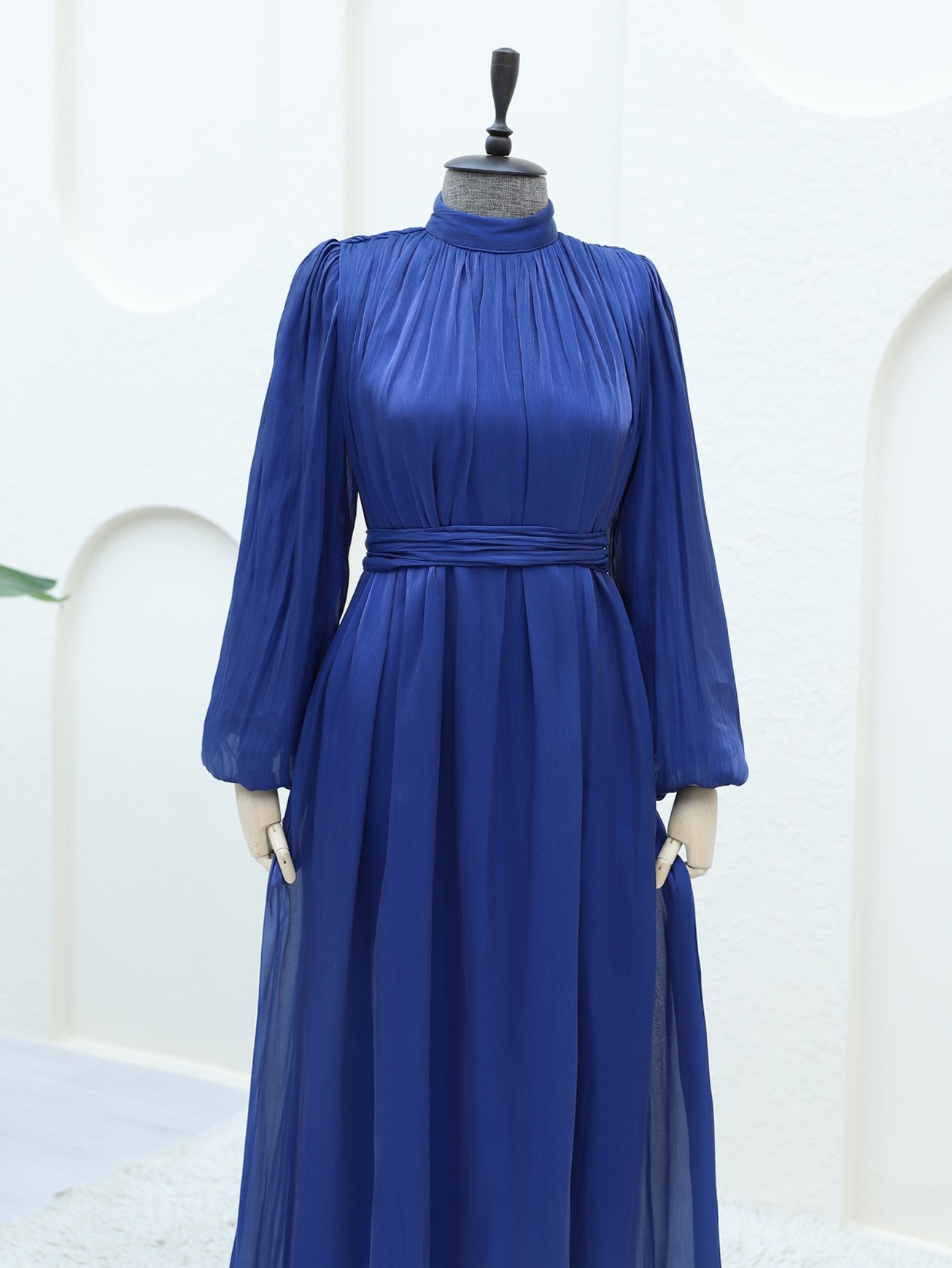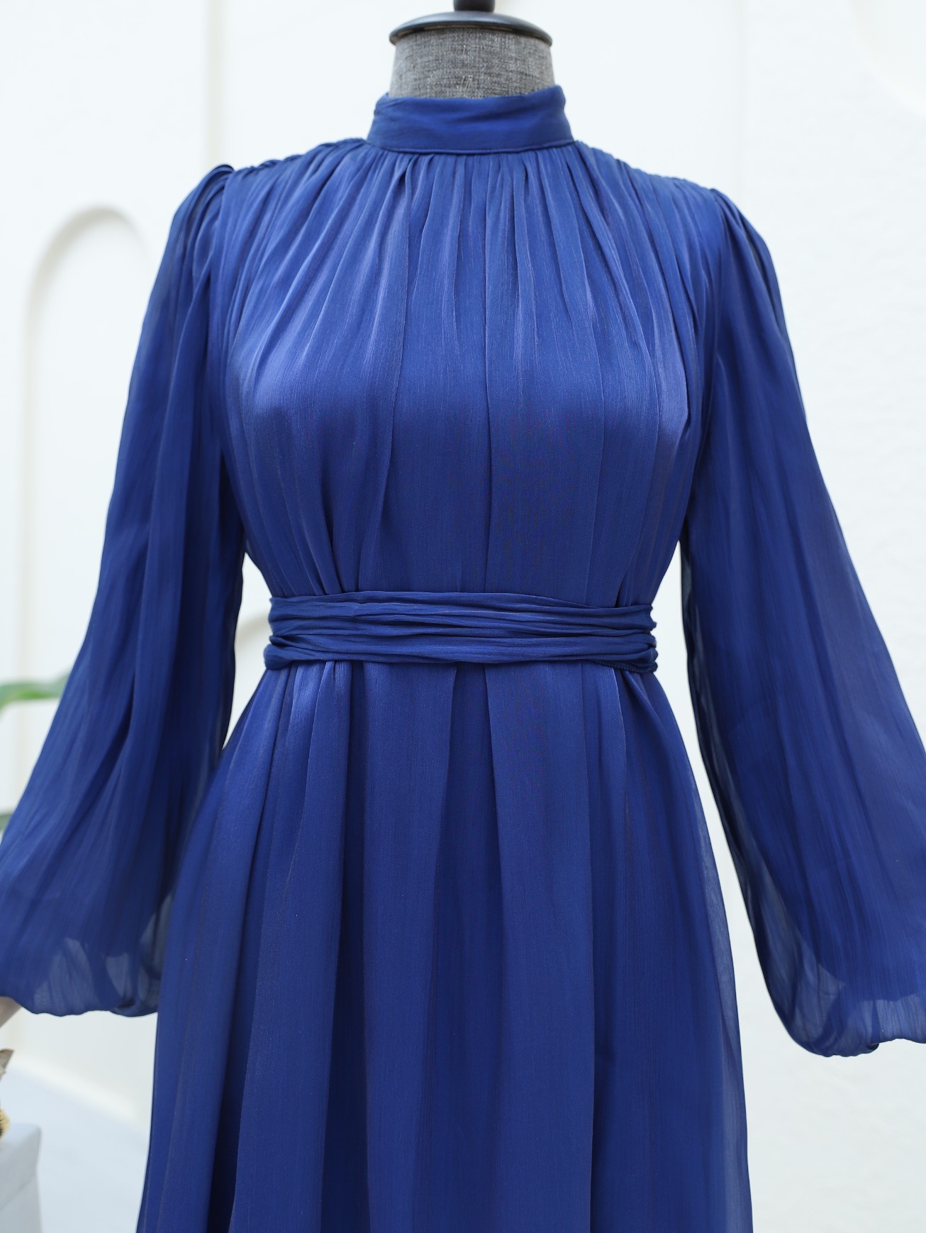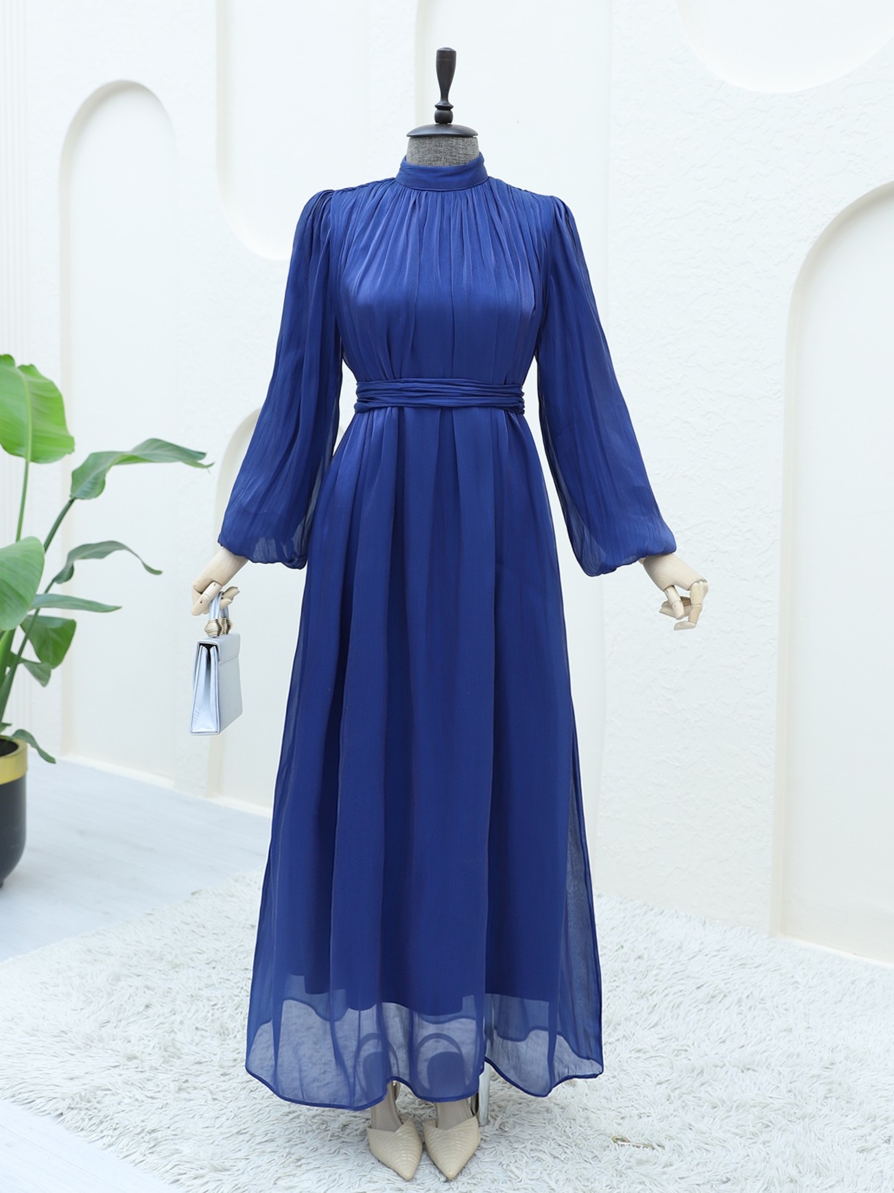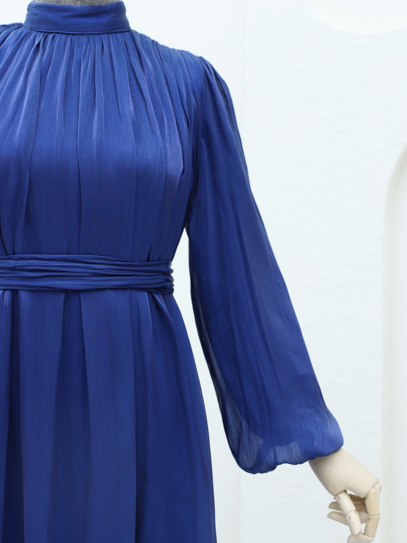 Omuzdan büzgülü, ışıltı kumaş, balon kol elbise; zarif ve dikkat çekici bir şıklık sunar. Işıltılı kumaşı ve omuz detayındaki büzgü, elbiseye sofistike bir hava katarken, balon kollar modern ve feminen bir görünüm yaratır. Özel davetler, akşam yemekleri veya şık organizasyonlar için mükemmel bir tercih olan bu elbise, rahatlık ve şıklığı bir arada sunar.