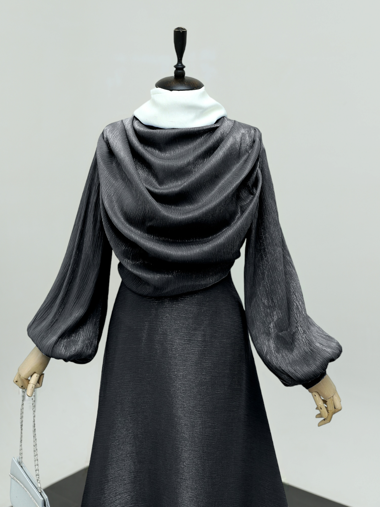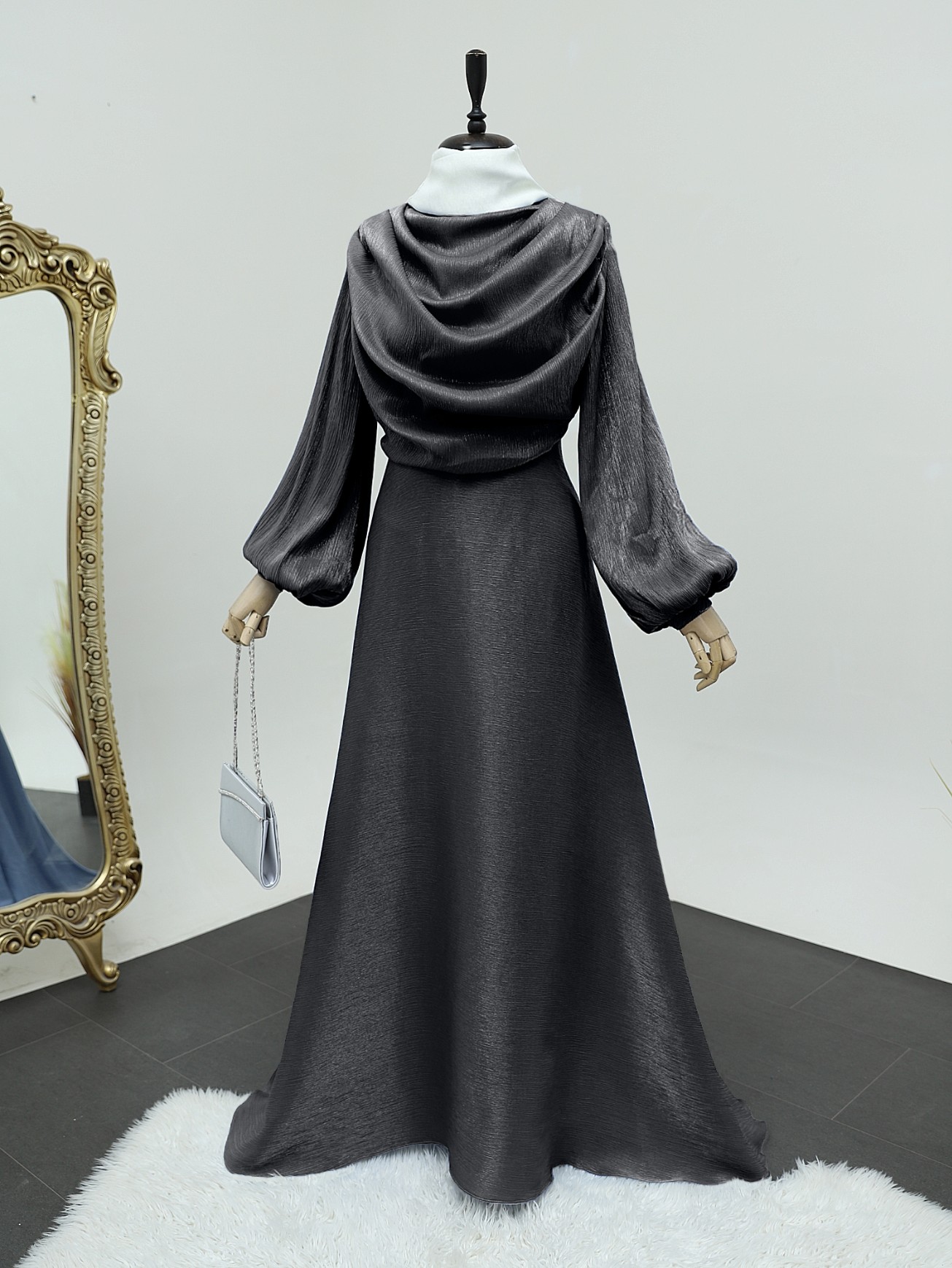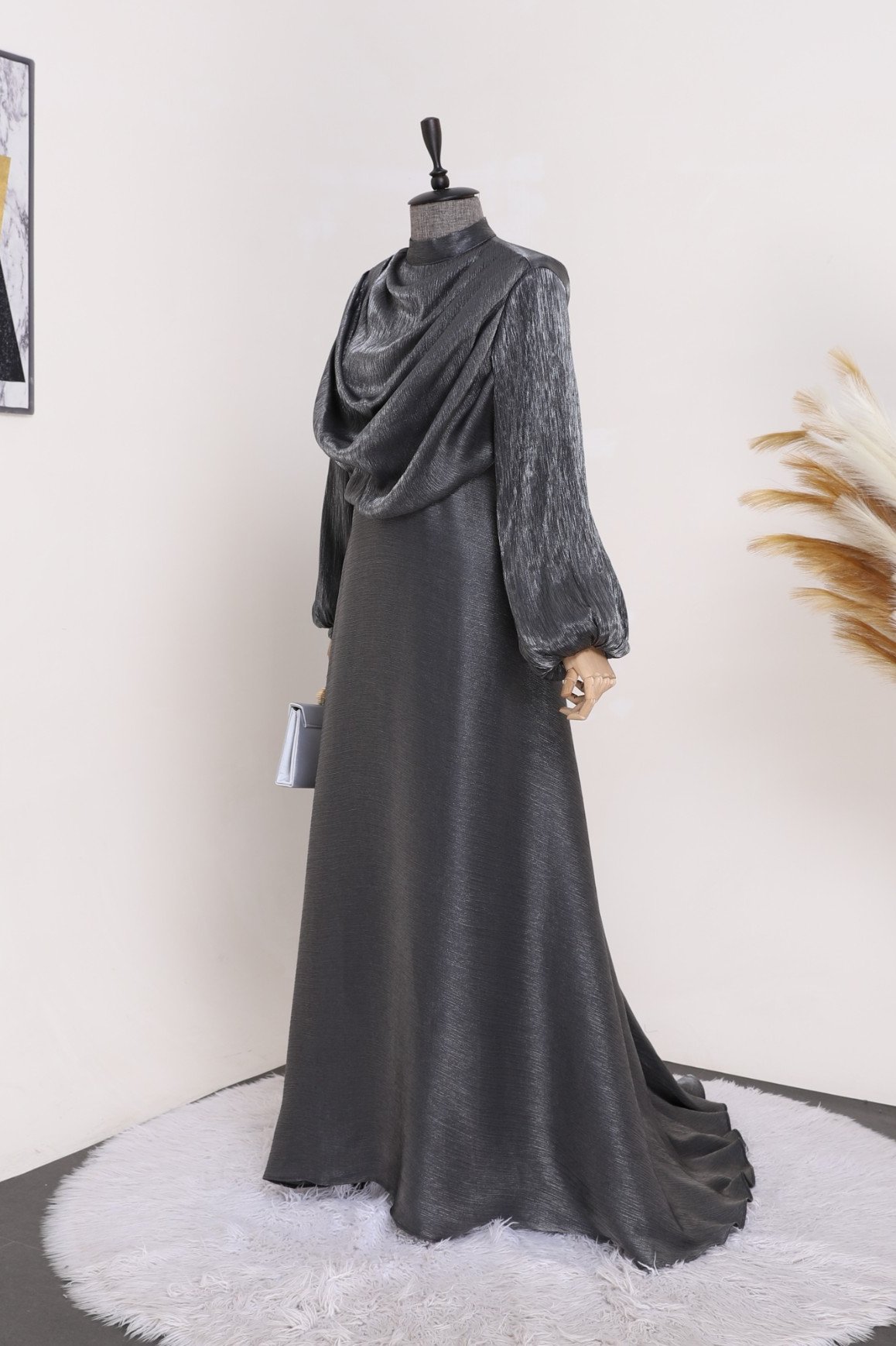Önü Dökümlü Kuyruklu Balon Kol Abiye -Antrasit