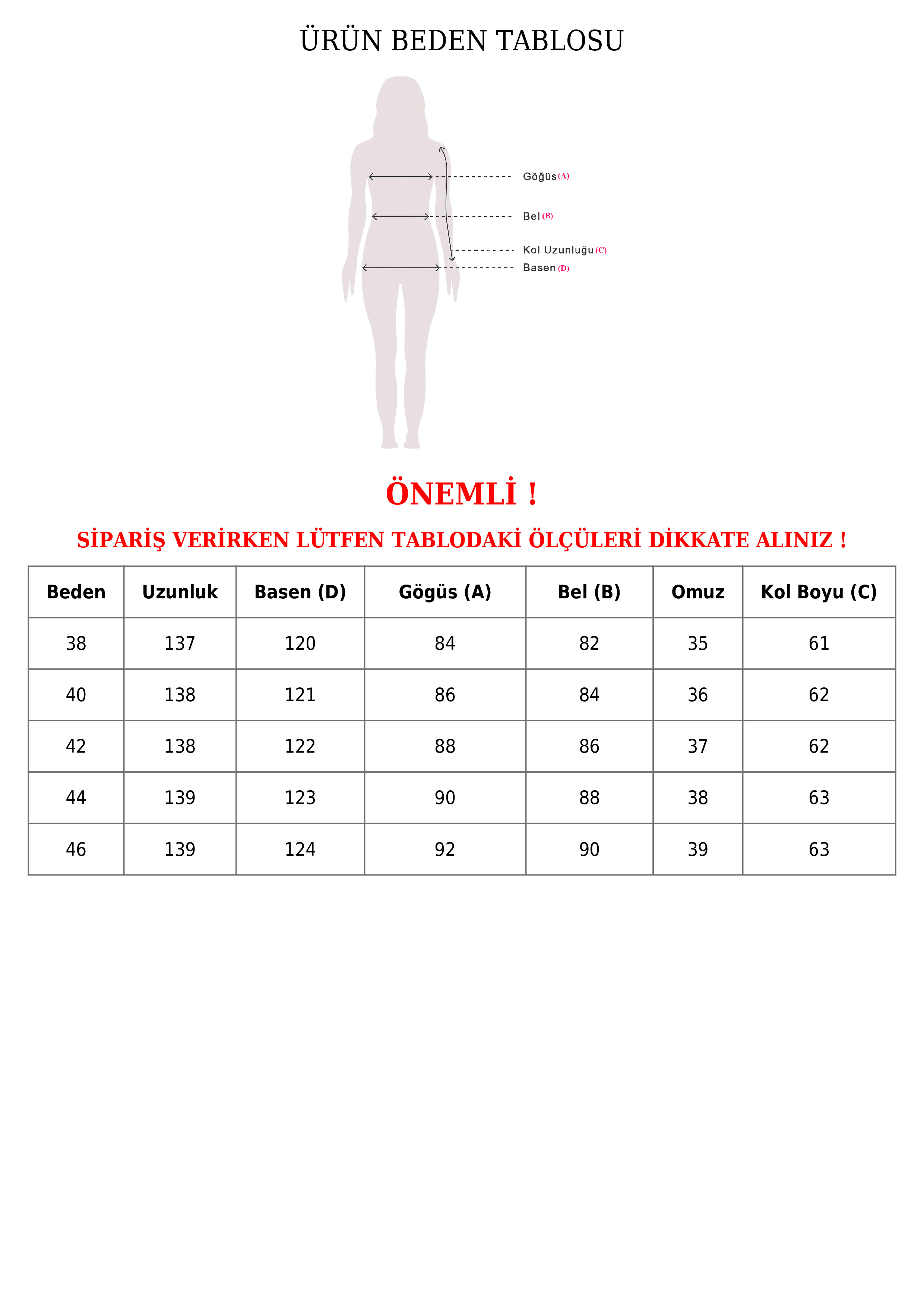 | Beden | Uzunluk | Basen | Göğüs | Bel | Omuz | Kol Boyu |